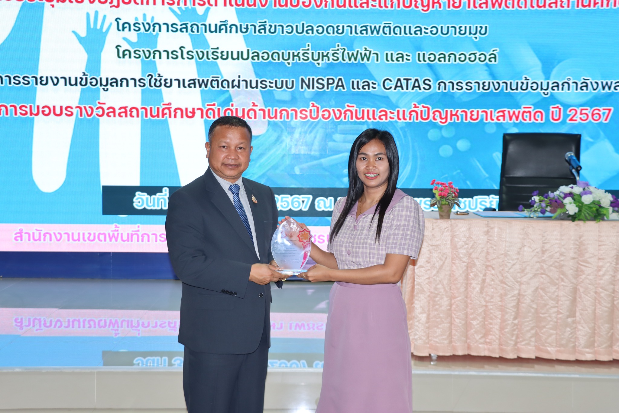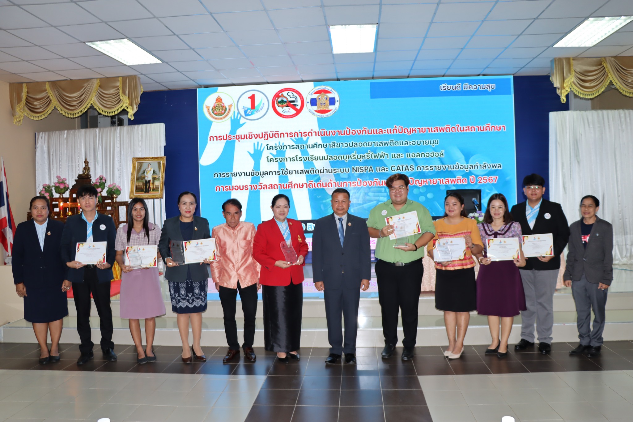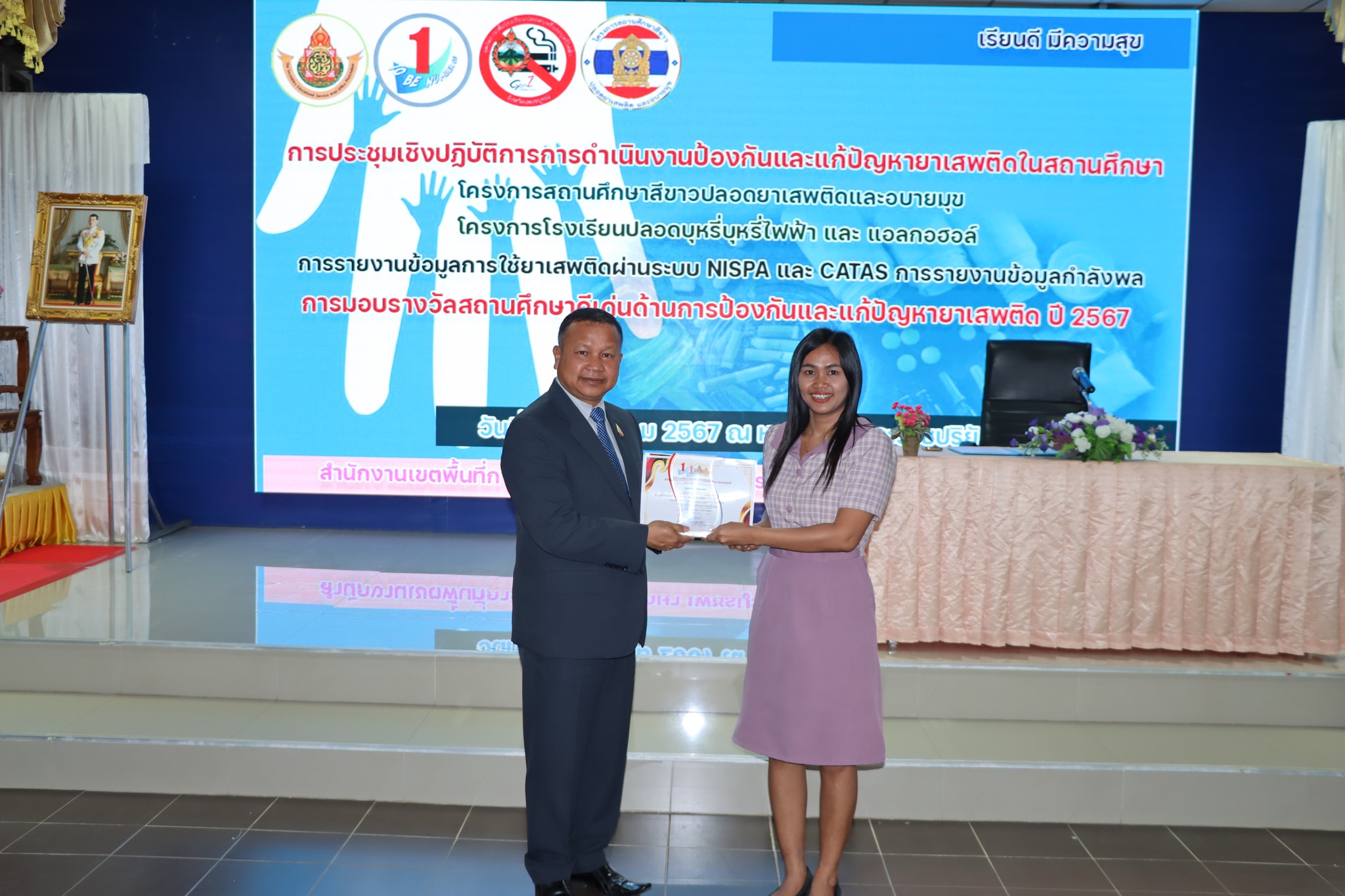 รับรางวัลโรงเรียนที่มีผลการดำเนินงานป้องกันและแก้ไขปัญหายาเสพติดในสถานศึกษา ประจำปี 2567 โรงเรียนที่ขับเคลื่อนงาน TO BE NUMBER ONE ระดับประเทศ รางวัลศูนย์การเรียนรู้ โรงเรียนปลอดบุหรี่และบุหรี่ไฟฟ้ายั่งยืน