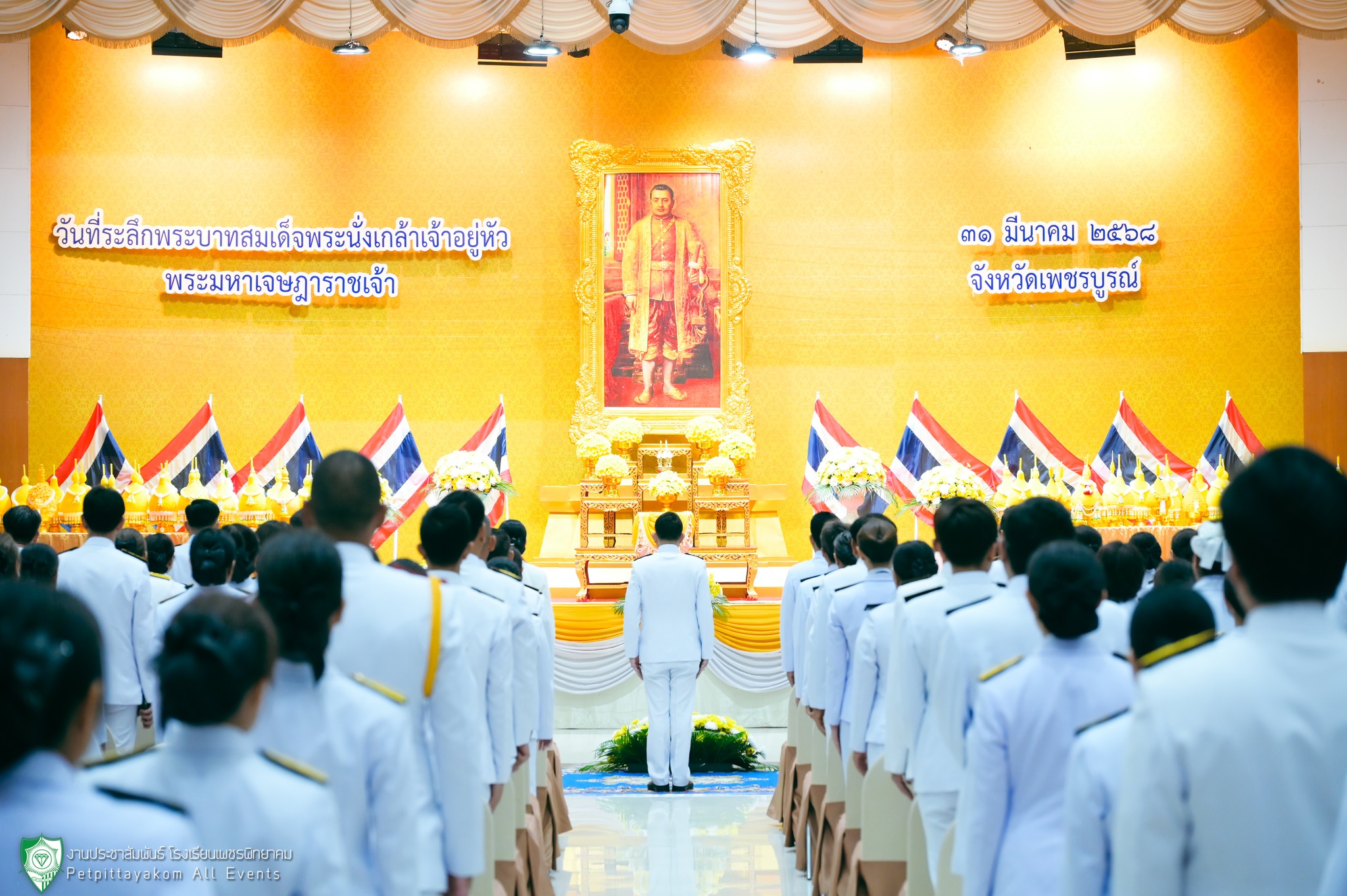 โรงเรียนเพชรพิทยาคม นำโดย นายวิษรุตต์ เมืองทา รองผู้อำนวยการโรงเรียน พร้อมด้วยตัวแทนครูร่วมพิธีวางพานพุ่มดอกไม้ถวายราชสักการะ เนื่องในวันที่ระลึกพระบาทสมเด็จพระนั่งเกล้าเจ้าอยู่หัว พระมหาเจษฎาราชเจ้า ประจำปี 2568โดยมี นายศรัณยู มีทองคำ ผู้ว่าราชการจังหวัดเพชรบูรณ์ เป็นประธานในพิธี พร้อมด้วย หัวหน้าส่วนราชการ ตุลาการ อัยการ ทหาร ตำรวจ และประชาชนจิตอาสาเข้าร่วมพิธี เมื่อวันที่ 31 มีนาคม 2568 ณ หอประชุมศูนย์ราชการจังหวัดเพชรบูรณ์