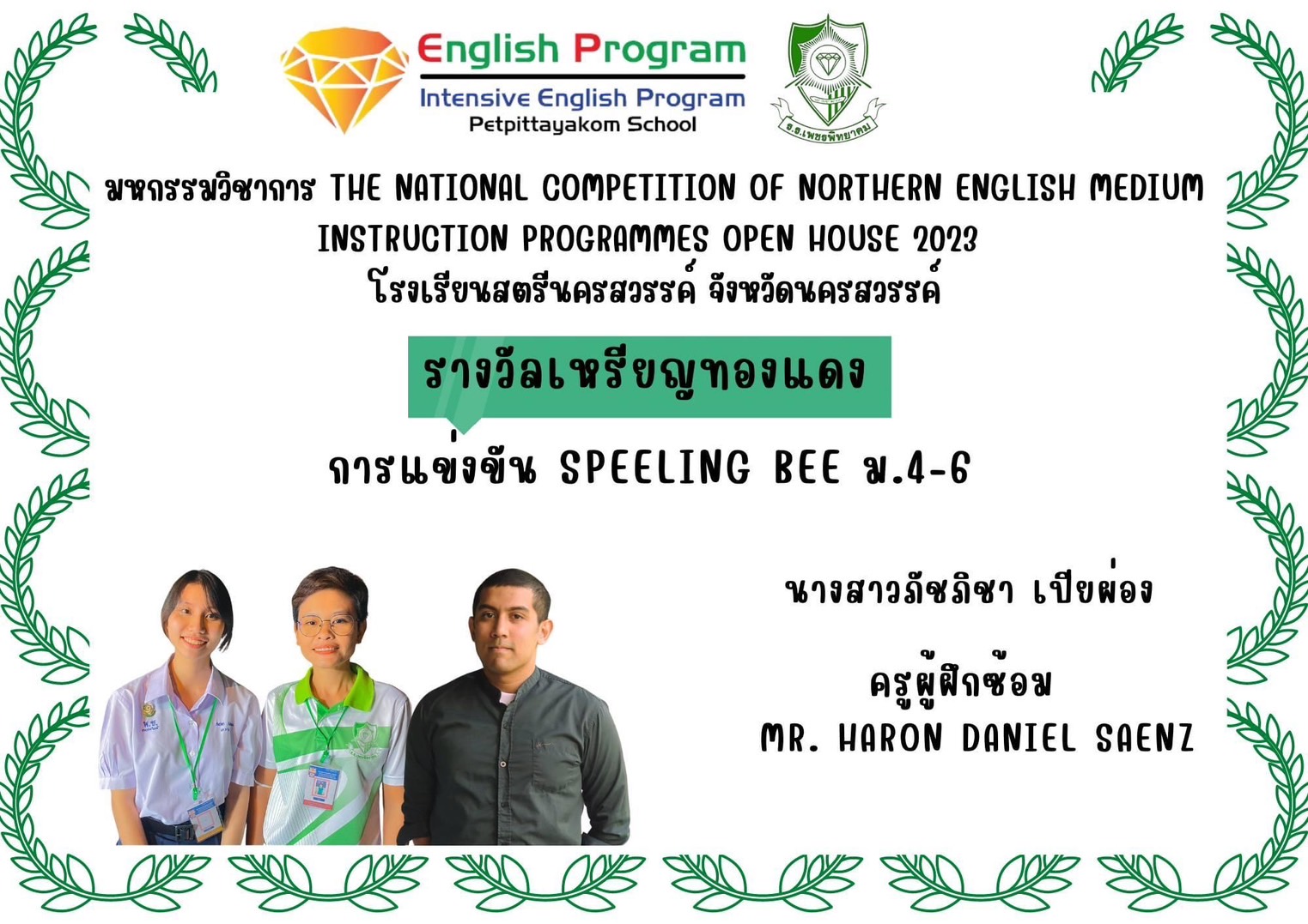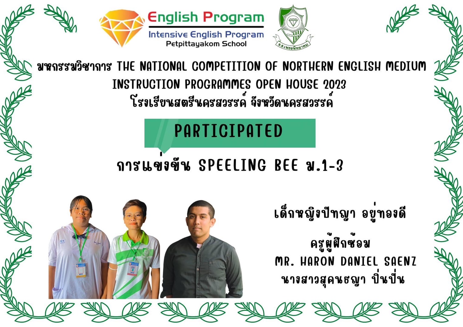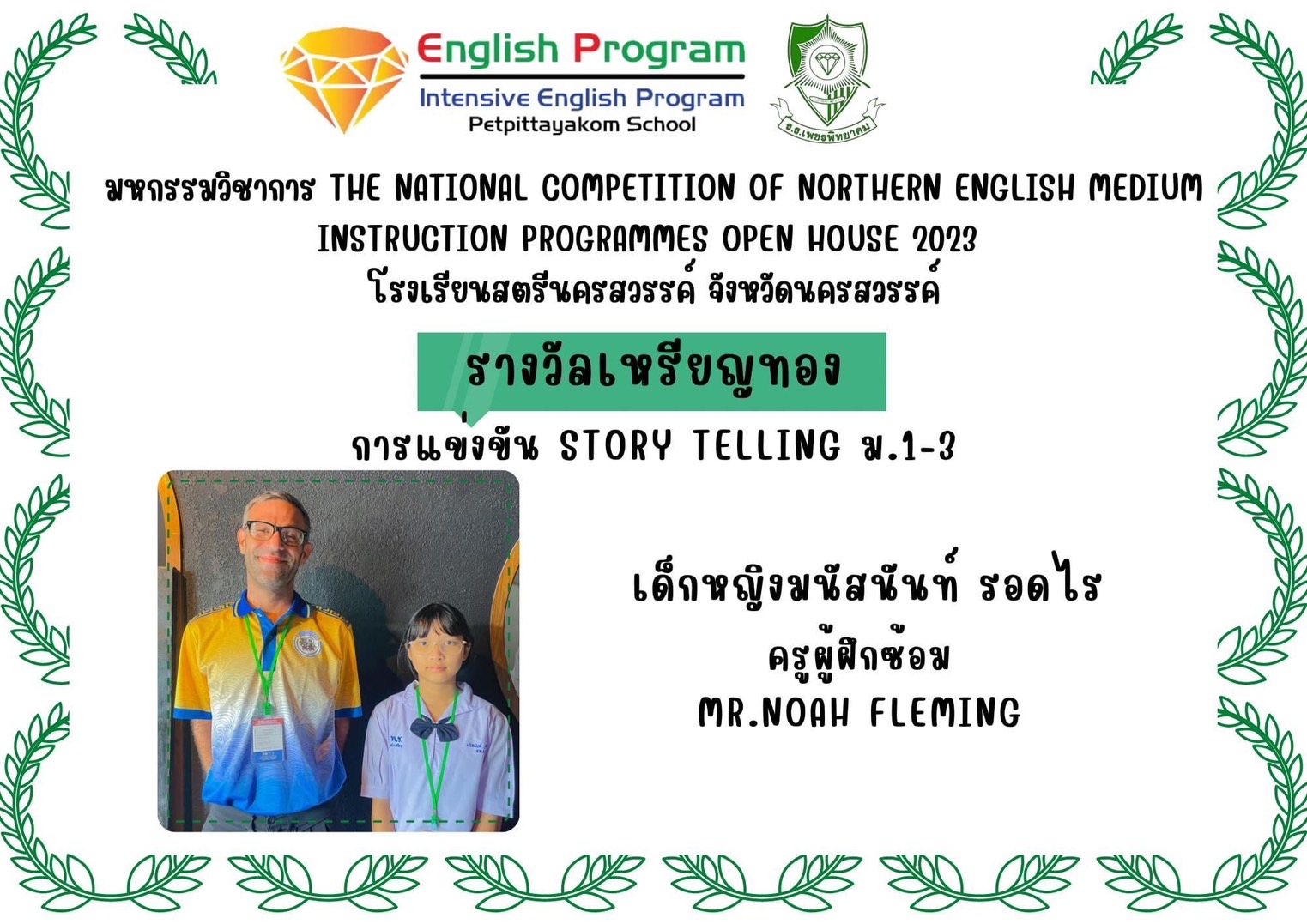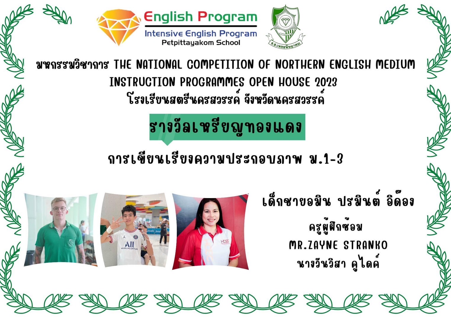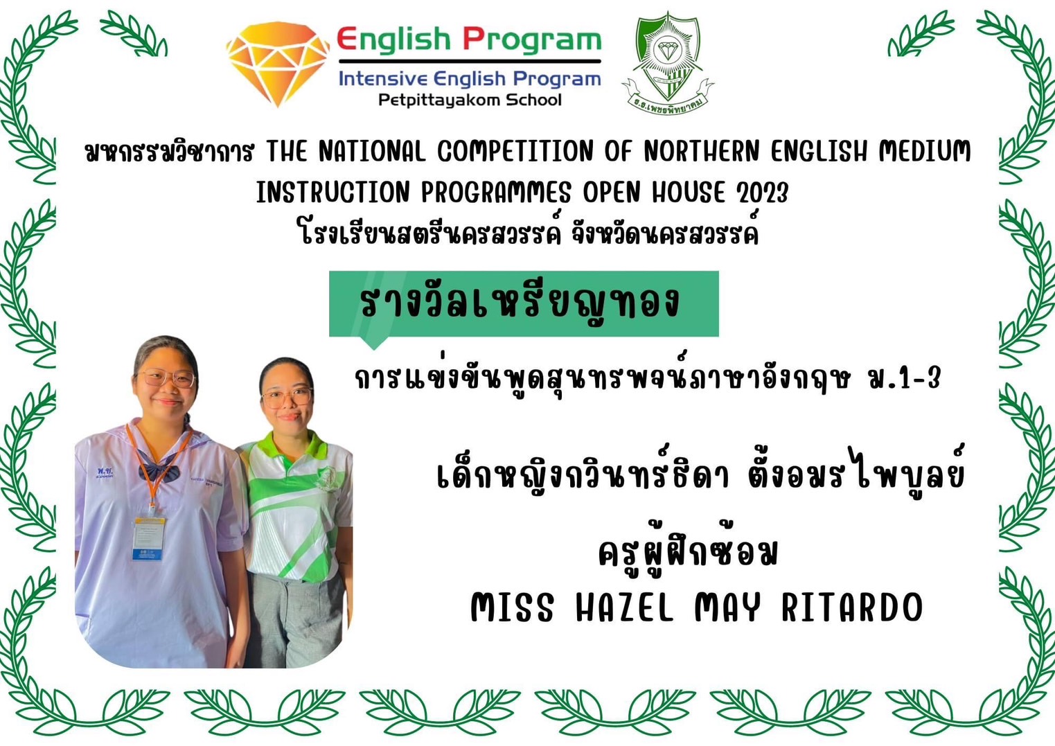 นักเรียนโครงการห้องเรียนพิเศษ English Program/ Intensive English Program เข้าร่วมการแข่งขันมหกรรมวิชาการ Northern English Medium Instruction Programmes Open House 2023 ครั้งที่ 34 ภายใต้แนวคิด “Reimagining English Medium Education: Diversity, Equity, Inclusion and Togetherness” ของศูนย์ส่งเสริมห้องเรียนพิเศษภาษาอังกฤษ ภาคเหนือโรงเรียนที่ดำเนินการจัดการเรียนการสอนตามหลักสูตรกระทรวงศึกษาธิการเป็นภาษาอังกฤษ (English Program / Mini English Program/Gifted/Intensive English Program) ประจำปีการศึกษา 2566 ระหว่างวันที่ 17-18 สิงหาคม 2566 ณ โรงเรียนสตรีนครสวรรค์ จังหวัดนครสวรรค์ เข้าร่วมการแข่งขันทั้งสิ้น 17 รายการ ผลการแข่งขันดังนี้