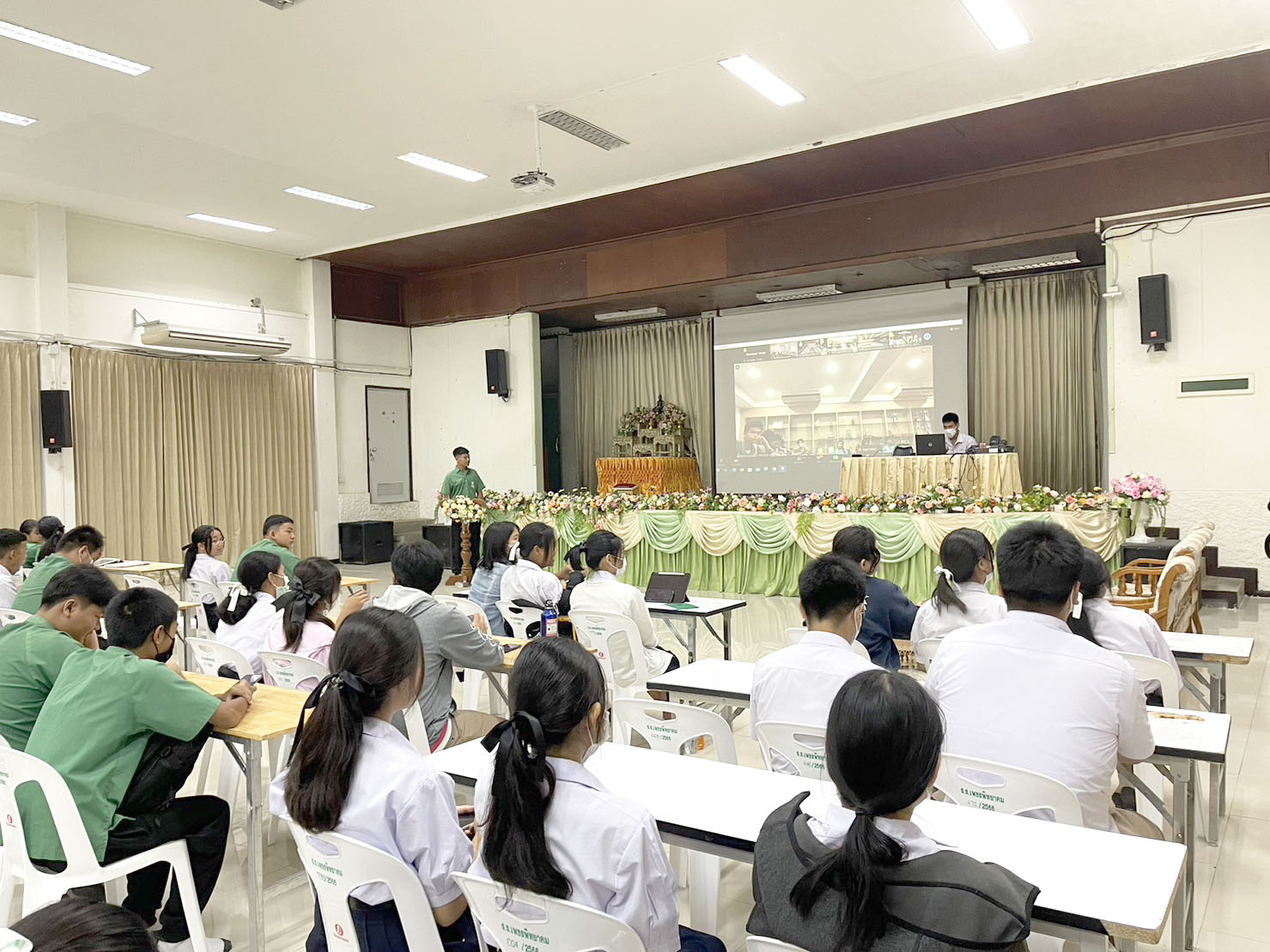 วันพฤหัสบดีที่ 31 สิงหาคม 2566 งานส่งเสริมประชาธิปไตยในโรงเรียน กลุ่มบริหารวิชาการ โรงเรียนเพชรพิทยาคม นำนักเรียน สภานักเรียน แกนนำนักเรียน ห้องเรียนละ 1 คน เข้ารับการอบรมเชิงปฏิบัติการเสริมความรู้สร้างเครือข่ายเยาวชนพิทักษ์สิทธิหลักประกันสุขภาพ (สปสช.) และการพัฒนาโครงการขอรับการสนับสนุนงบประมาณจากกองทุนหลักประกันสุขภาพระดับท้องถิ่น ผ่านระบบ Online Zoom Meeting และ Facebook live ตั้งแต่เวลา 08.30-12.30 น. ณ หอประชุมดอกแก้ว โรงเรียนเพชรพิทยาคม
