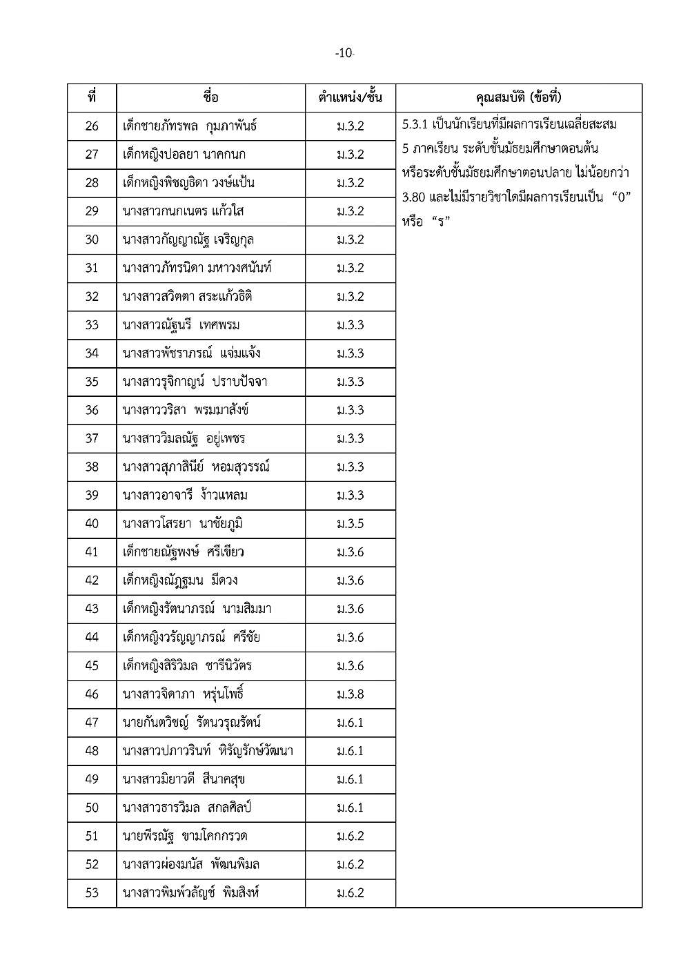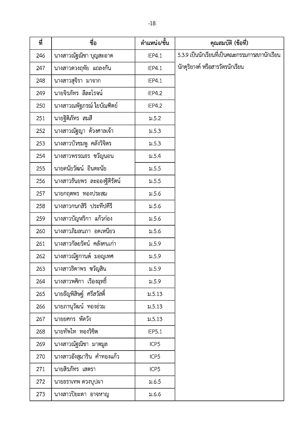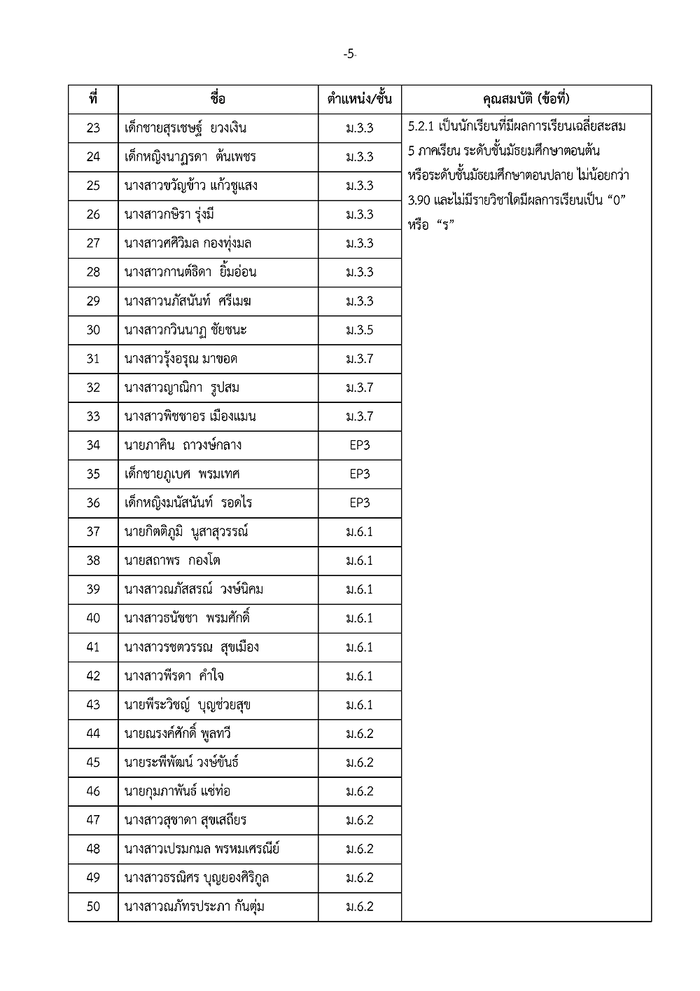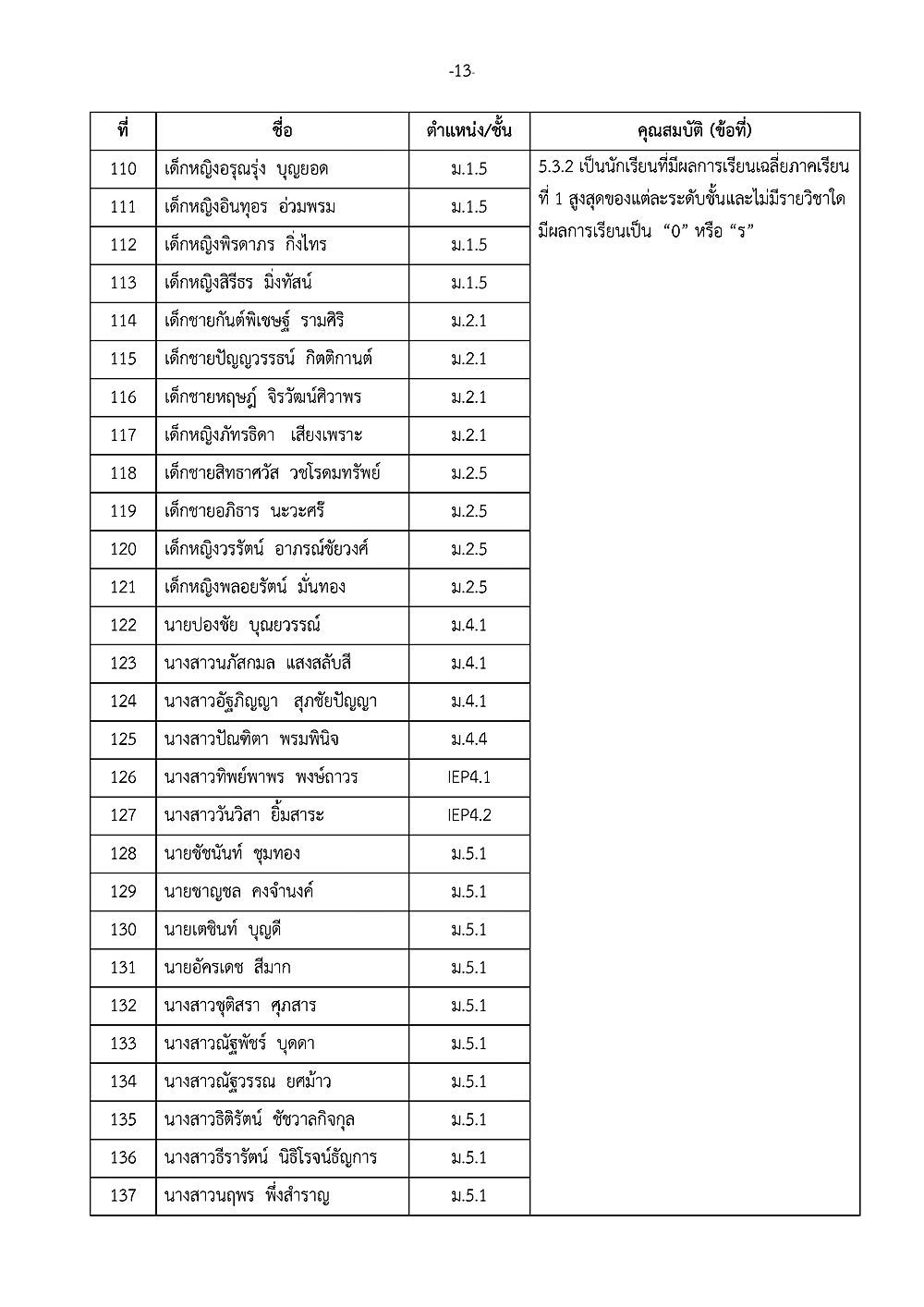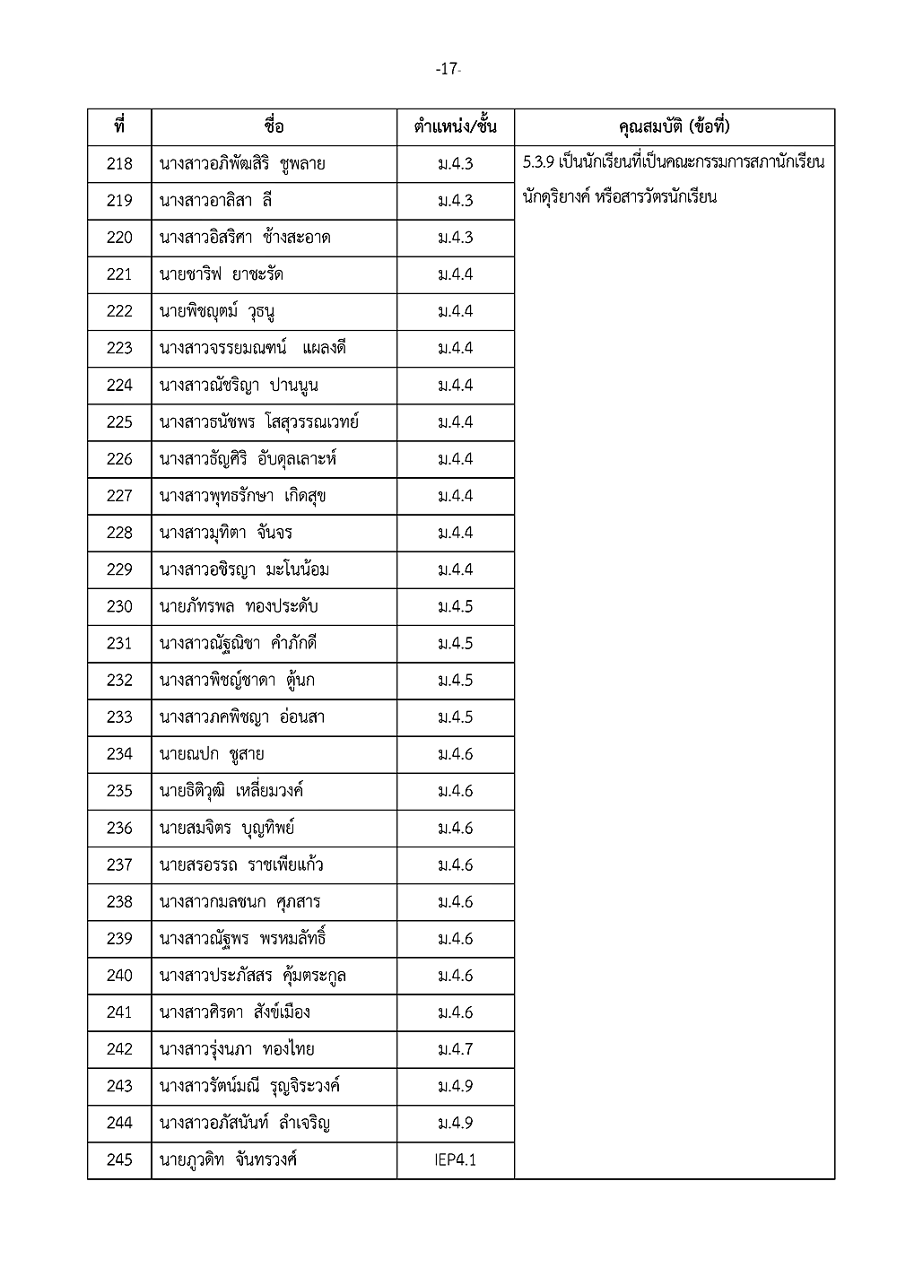 เรื่อง การประกาศรายชื่อผู้ได้รับรางวัลเชิดชูเกียรติ วันเกียรติยศโรงเรียน