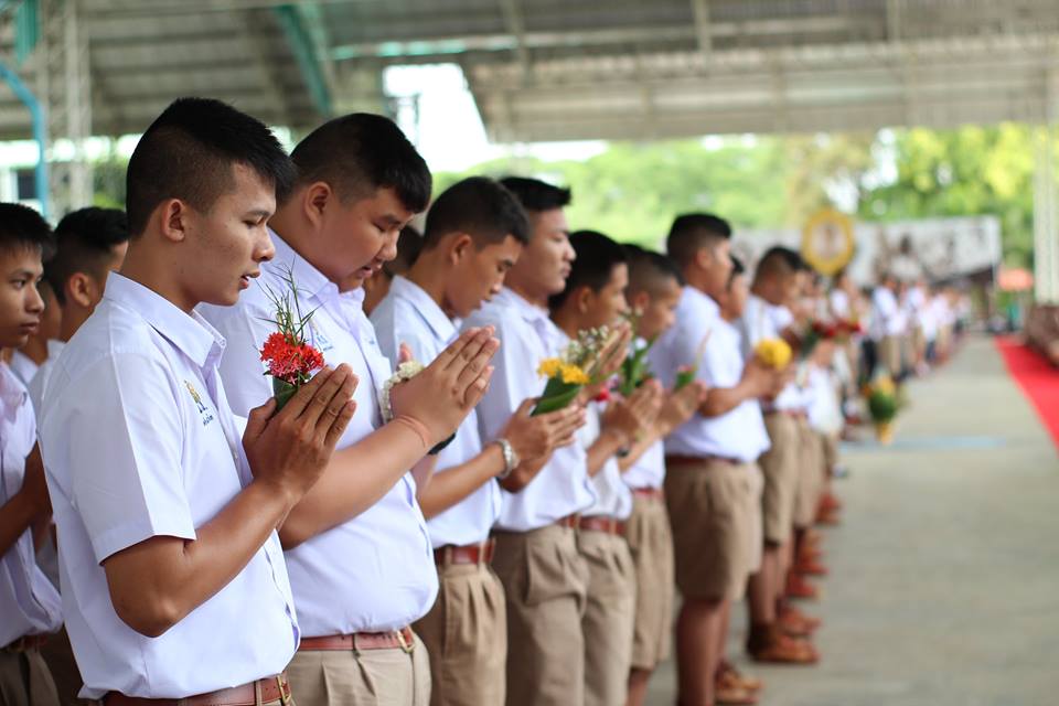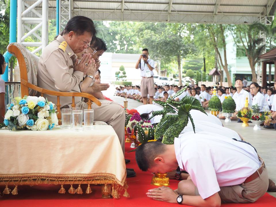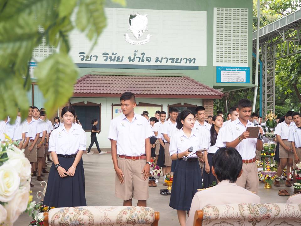 - ตัวแทนนักเรียนกล่าวคำบูชาพระรัตนตรัยและกล่าวคำบูชาครู