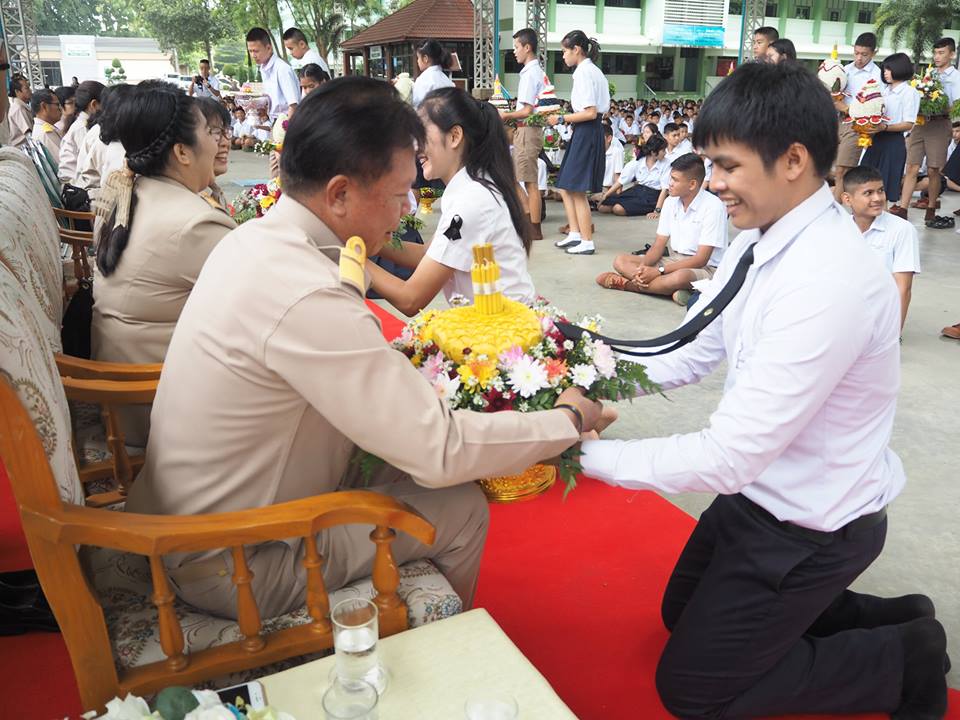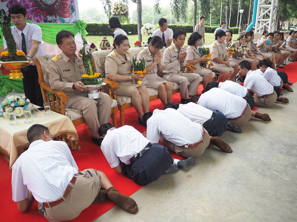 - คณะกรรมการนักเรียน ถือพานดอกไม้ธูปเทียนไปกราบผู้อำนวยการและรองผู้อำนวยการ โดยคลานเข้าไปส่งพานดอกไม้ ธูปเทียนกรวยดอกไม้แล้วกราบพร้อมกัน