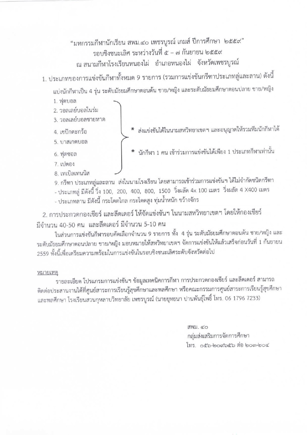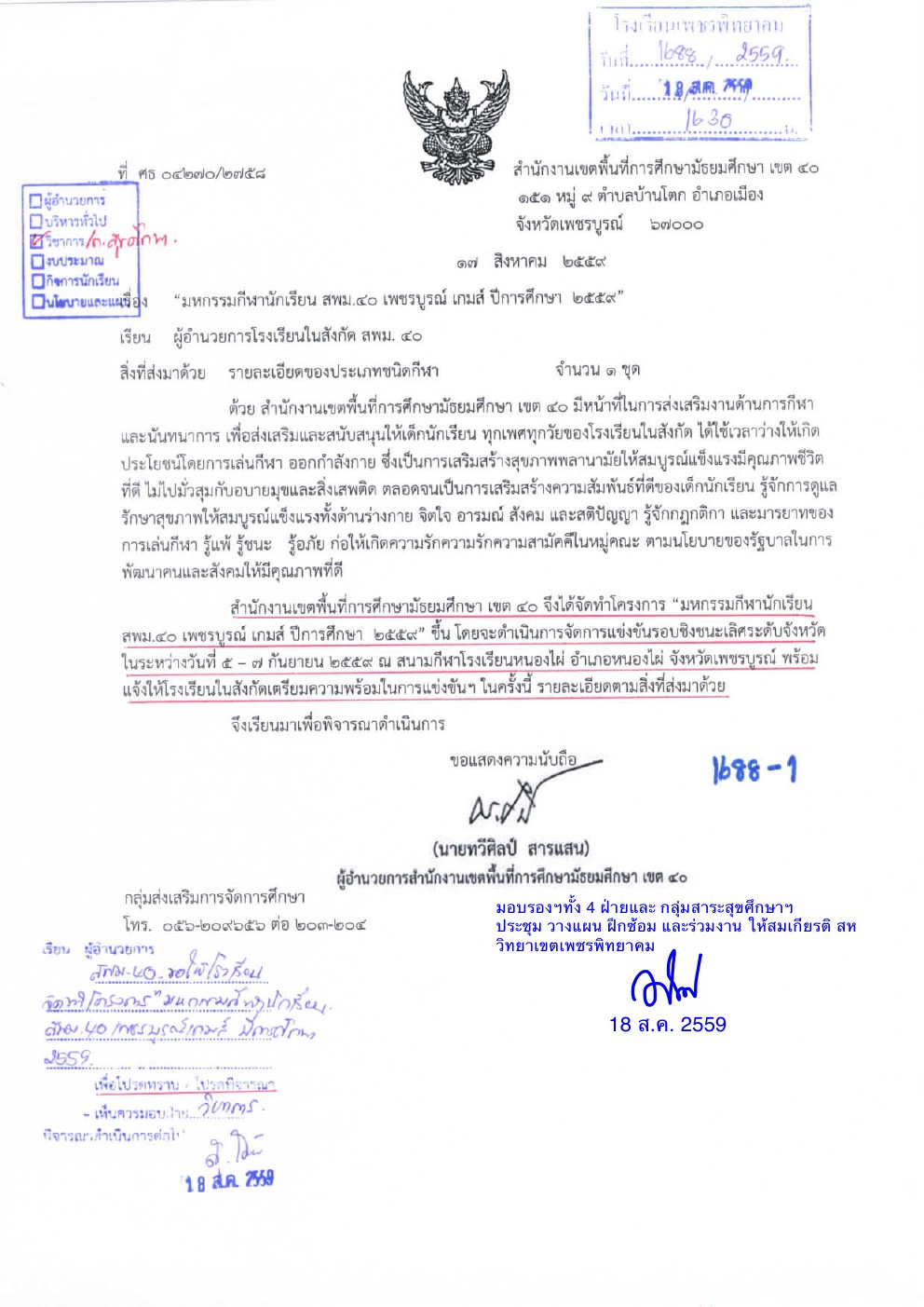 >> คำสั่ง 1688 มหกรรมกีฬานักเรียน สพม.40 เพชรบูรณ์เกมส์ ปีการศึกษา 2559