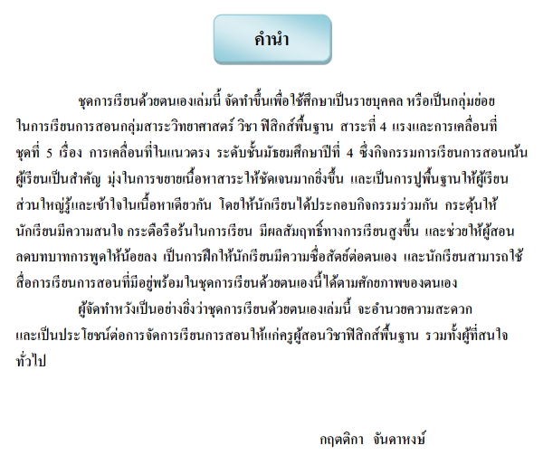 ชุดการเรียนด้วยตัวเอง เรื่อง การเคลื่อนที่ในแนวตรง
