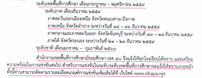 โดยทาง สพม.40 ได้มีหนังสือแจ้งกำหนดการจัดงานศิลปหัตถกรรมนักเรียนครั้งที่ 66 ปีการศึกษา 2559 ดังนี้