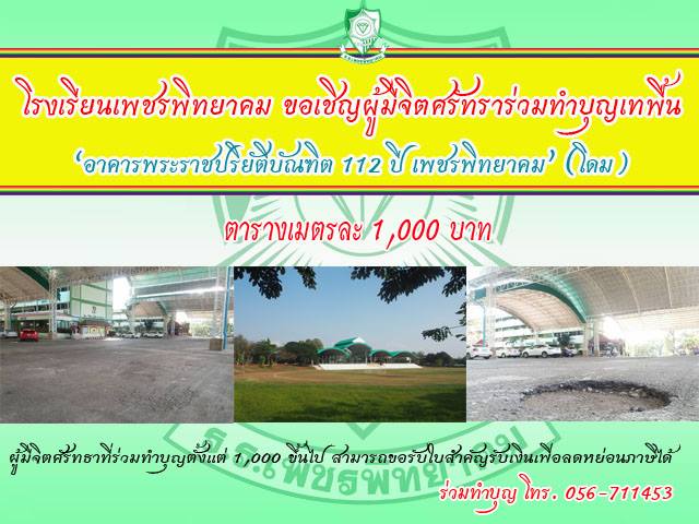 รงเรียนเพชรพิทยาคม ขอเชิญผู้มีจิตศรัทราร่วมทำบุญเทพื้น
