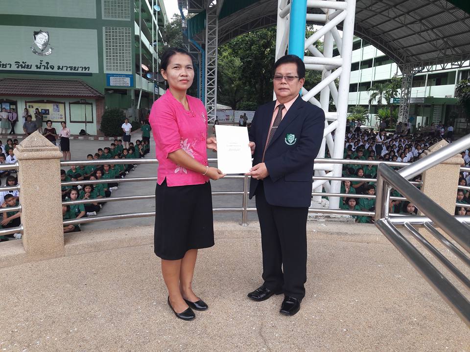 วันที่ 2 สิงหาคม 2559 ดร.พีรพัฒน์ วัชรินทรางกูร ผู้อำนวยการโรงเรียนเพชรพิทยาคม มอบโล่ เกียรติบัตร พร้อมเงินรางวัลให้กับ