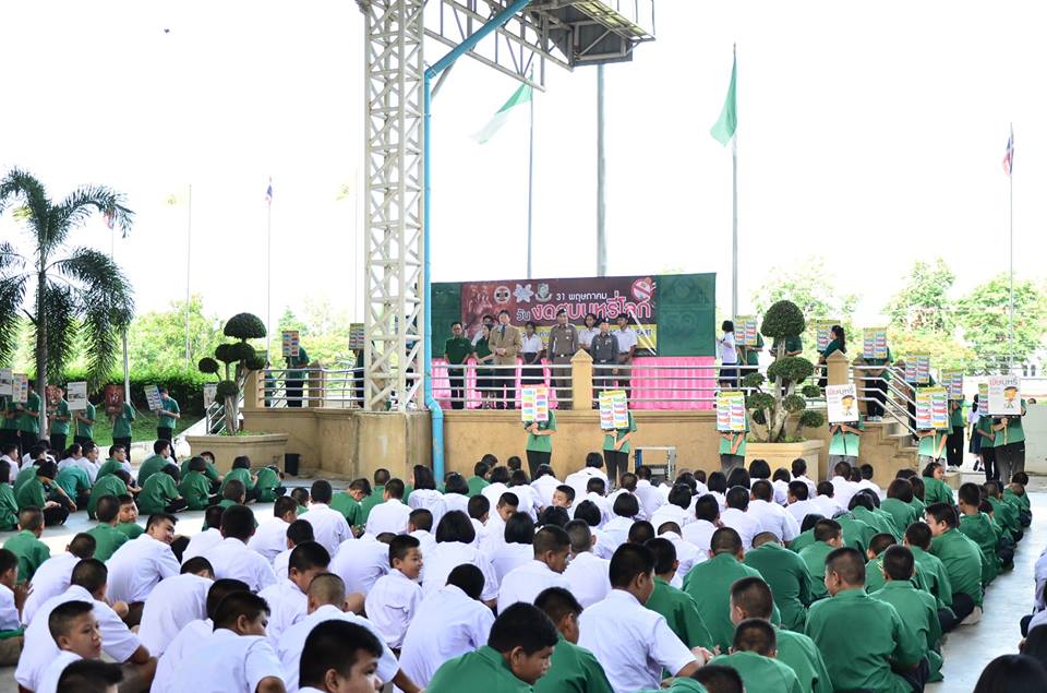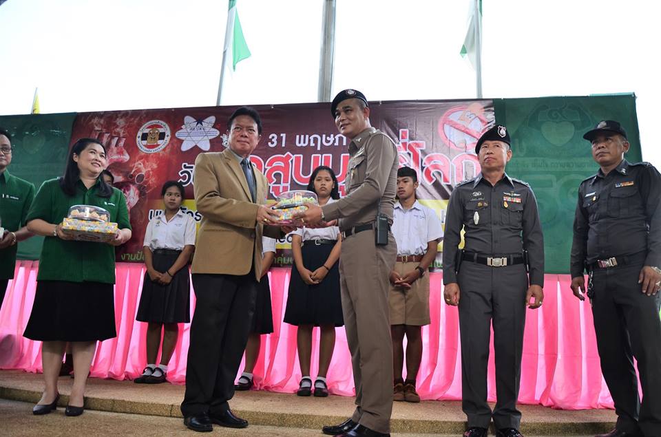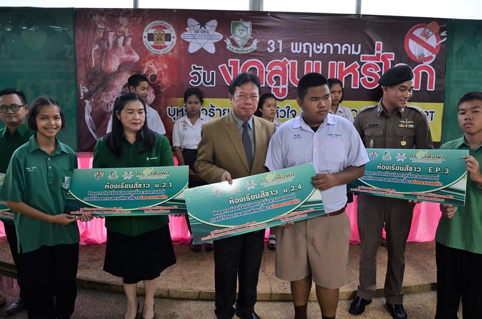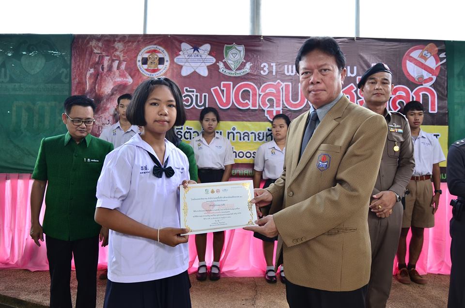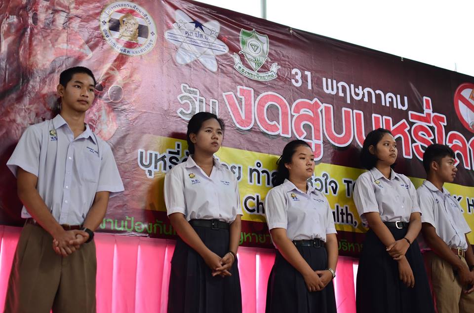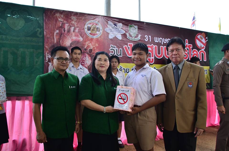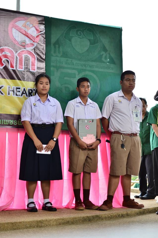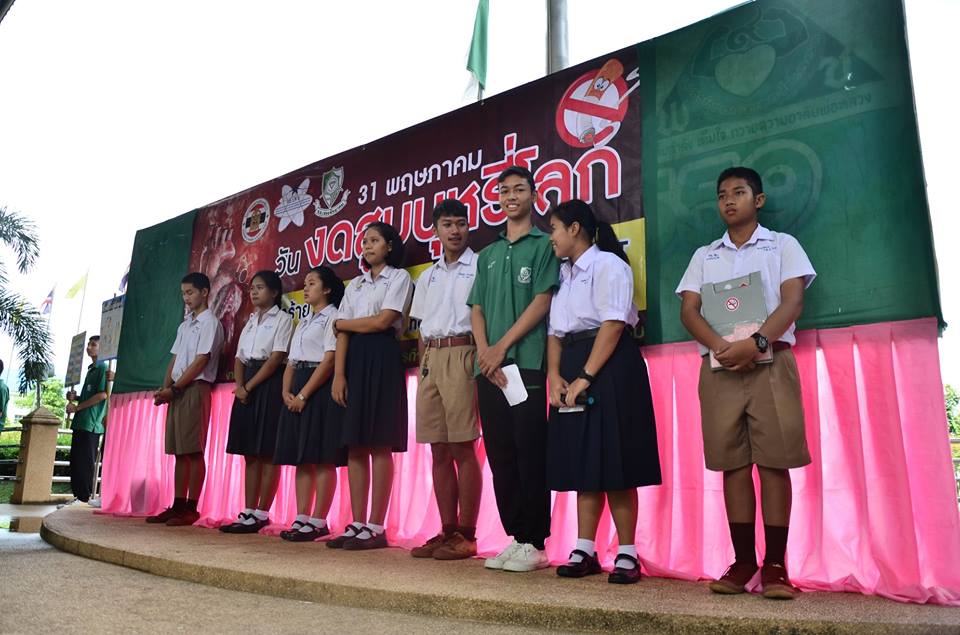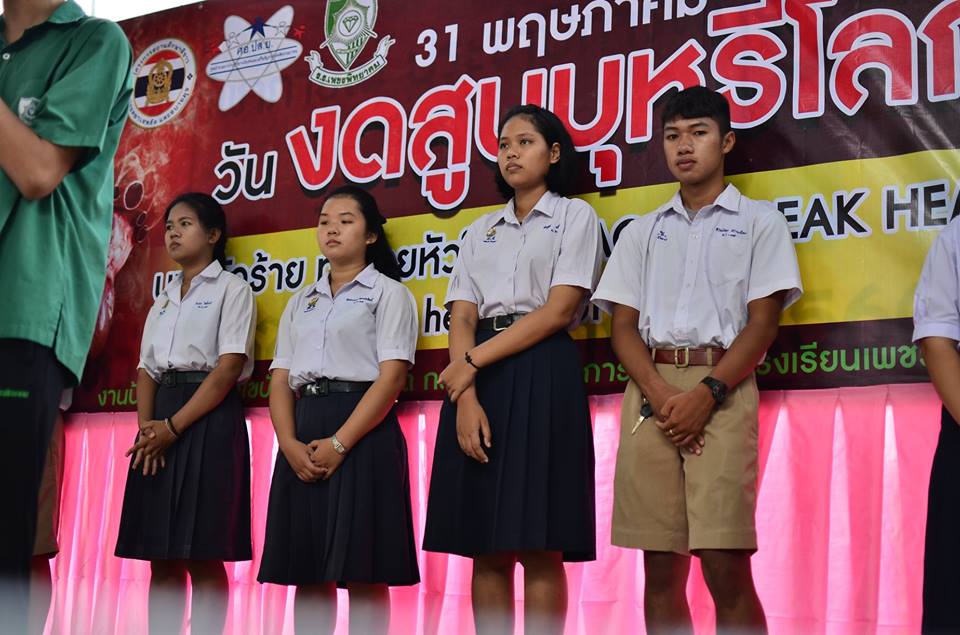 งานป้องกันและแก้ไขปัญหายาเสพติด กลุ่มบริหารกิจการนักเรียนโรงเรียนเพชรพิทยาคม จัดกิจกรรมรณรงค์เนื่องใน “วันงดสูบบุหรี่โลก” ประจำปี 2561 เมื่อวันที่ 31 พฤษภาคม 2561 ณ บริเวณหน้าเสาธง โรงเรียนเพชรพิทยาคม