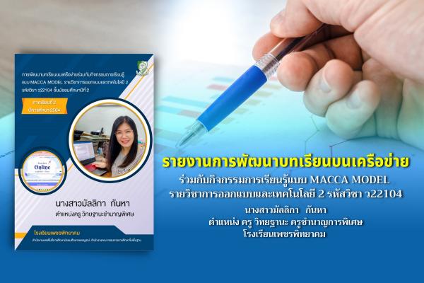 ชื่อเรื่อง การพัฒนารูปแบบการเรียนการสอนตามแนวคิด Active Learning ด้วยกิจกรรมการเรียนรู้แบบ MACCA MODEL เพื่อส่งเสริมสมรรถนะสำคัญของผู้เรียนด้านการคิดและการแก้ปัญหา รายวิชา การออกแบบและเทคโนโลยี 2 รหัสวิชา ว22104 ชั้นมัธยมศึกษาปีที่ 2 ชื่อผู้วิจัย นางสาวมั