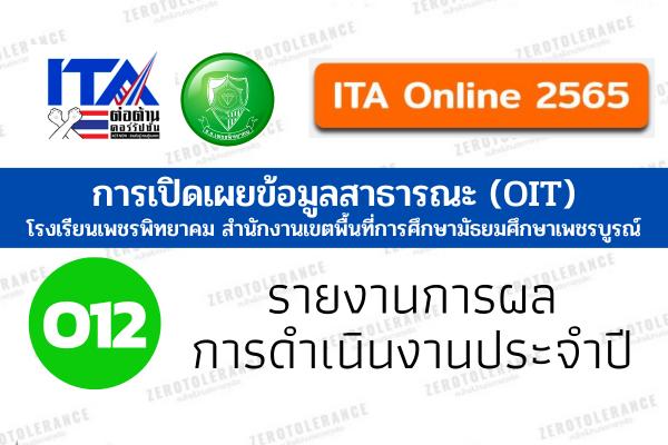 O12 : รายงานผลการดำเนินงานประจำปี แสดงผลการดำเนินงานตามแผนดำเนินงานประจำปี มีข้อมูลรายละเอียดสรุปผลการดำเนินงาน อย่างน้อย ประกอบด้วย ผลการดำเนินการโครงการหรือกิจกรรม ผลการใช้จ่ายงบประมาณ ปัญหาอุปสรรค และข้อเสนอแนะ เป็นรายงานผลของปีงบประมาณ พ ศ 2564