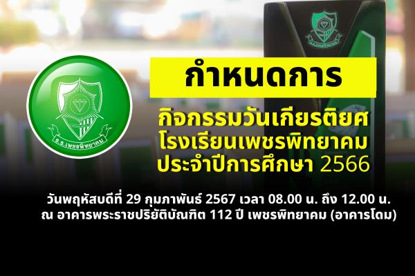โรงเรียนเพชรพิทยาคม นำโดย นางขนิษฐา พิมรัตน์ รองผู้อำนวยการโรงเรียน พร้อมด้วย นายวิษรุตต์ เมืองทา รองผู้อำนวยการโรงเรียน และคณะครู เข้าร่วมพิธีเจริญพระพุทธมนต์และทำบุญตักบาตรถวายพระราชกุศล เนื่องในโอกาสวันคล้ายวันประสูติ สมเด็จพระเจ้าลูกเธอ เจ้าฟ้าพัชรกิต