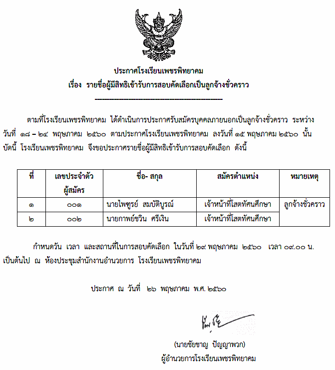เรื่อง รายชื่อผูมีสิทธิเขารับการสอบคัดเลือกเปนลูกจางชั่วคราว