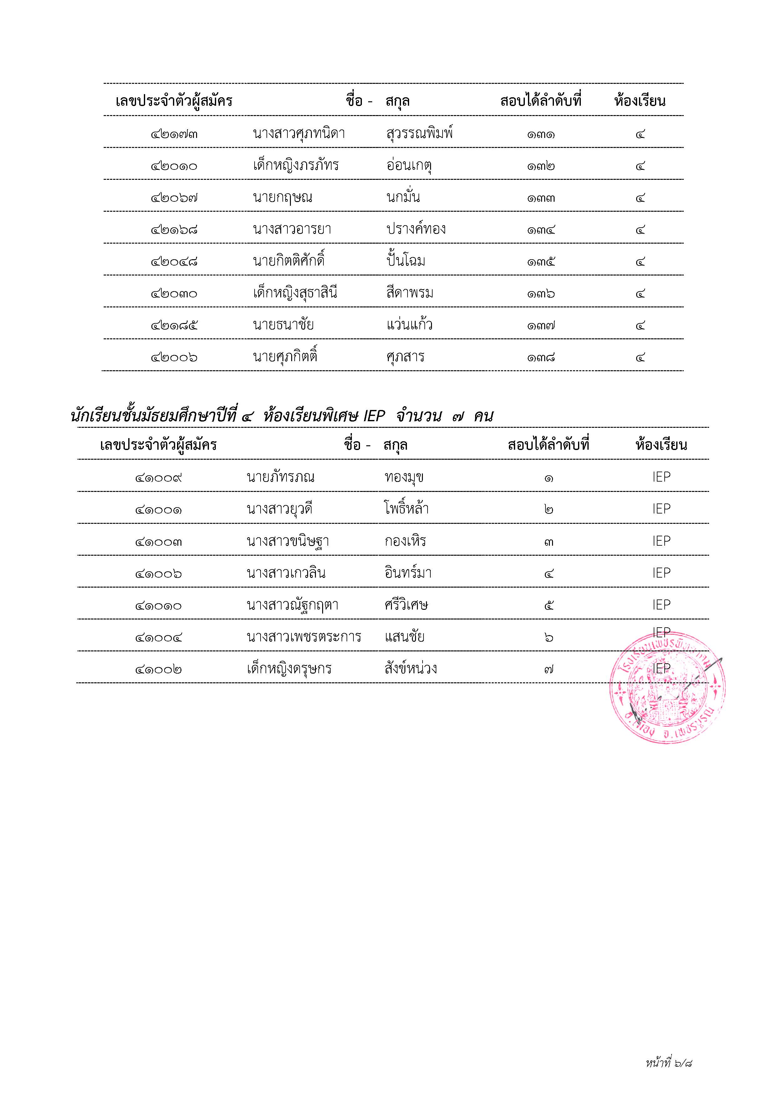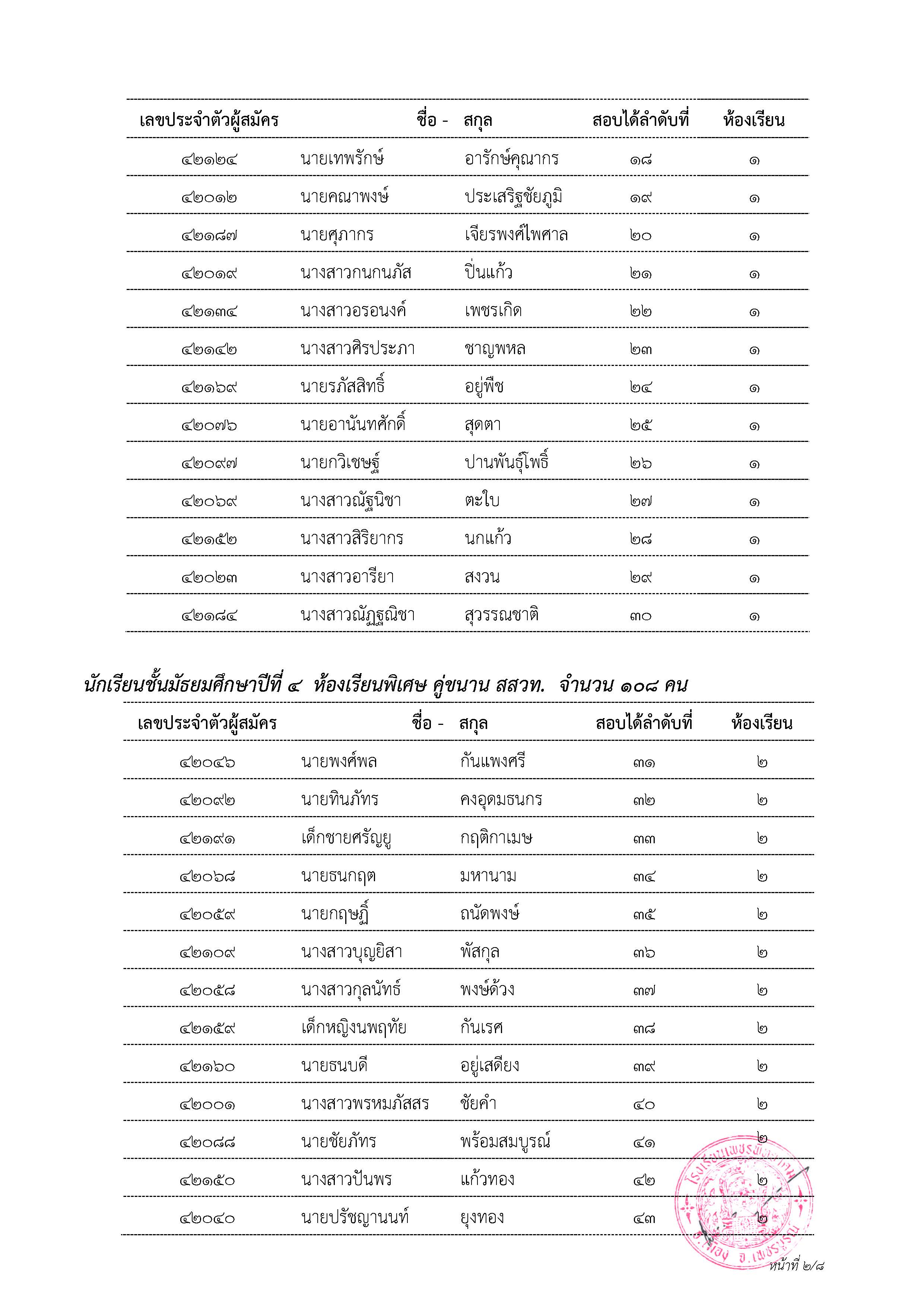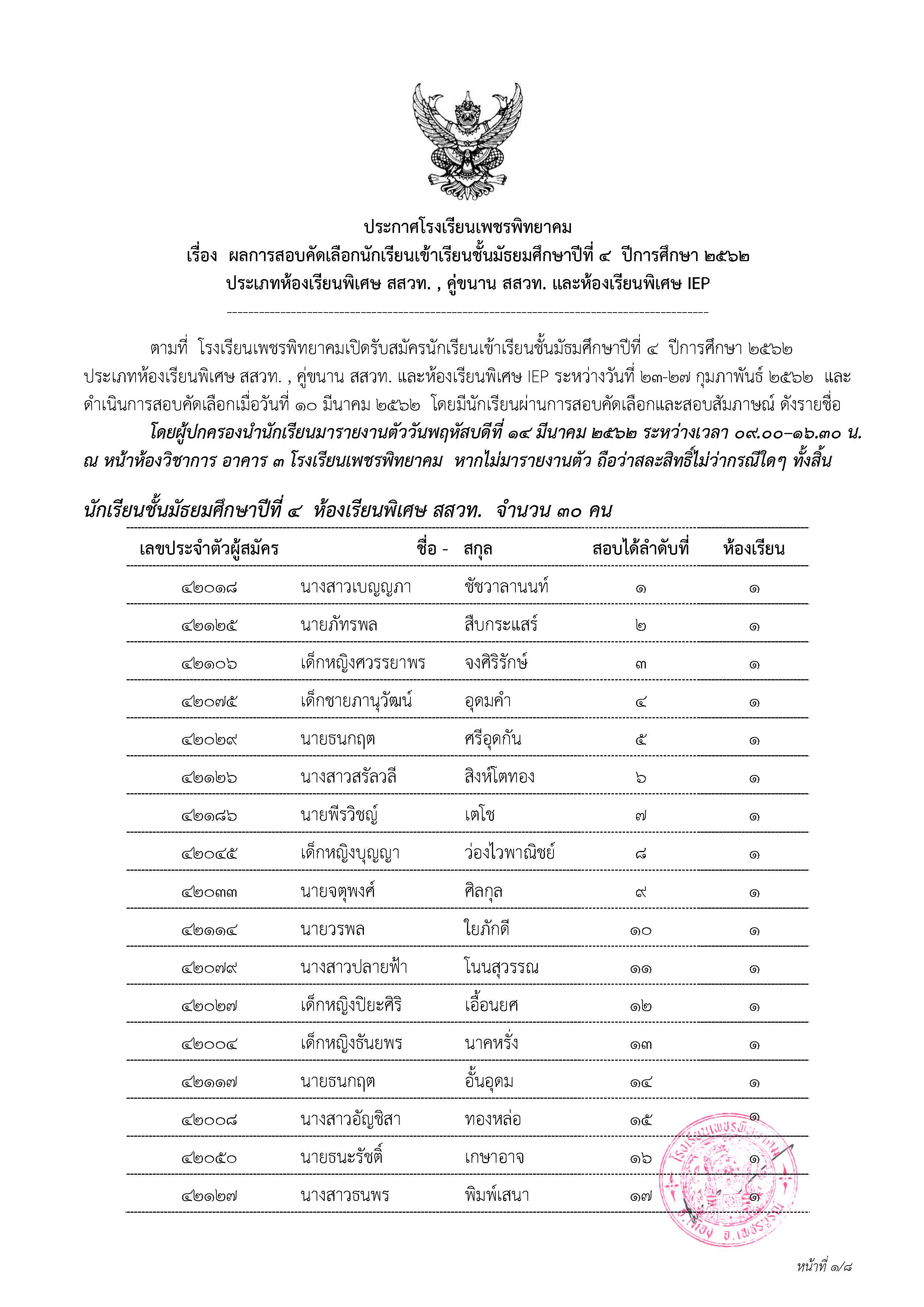 ประกาศผลการสอบคัดเลือกนักเรียนเข้าเรียนชั้นมัธยมศึกษาปีที่ 4 ปีการศึกษา2562 ประเภทห้องเรียนพิเศษ สสวท. , คู่ขนาน สสวท. และห้องเรียนพิเศษ IEP