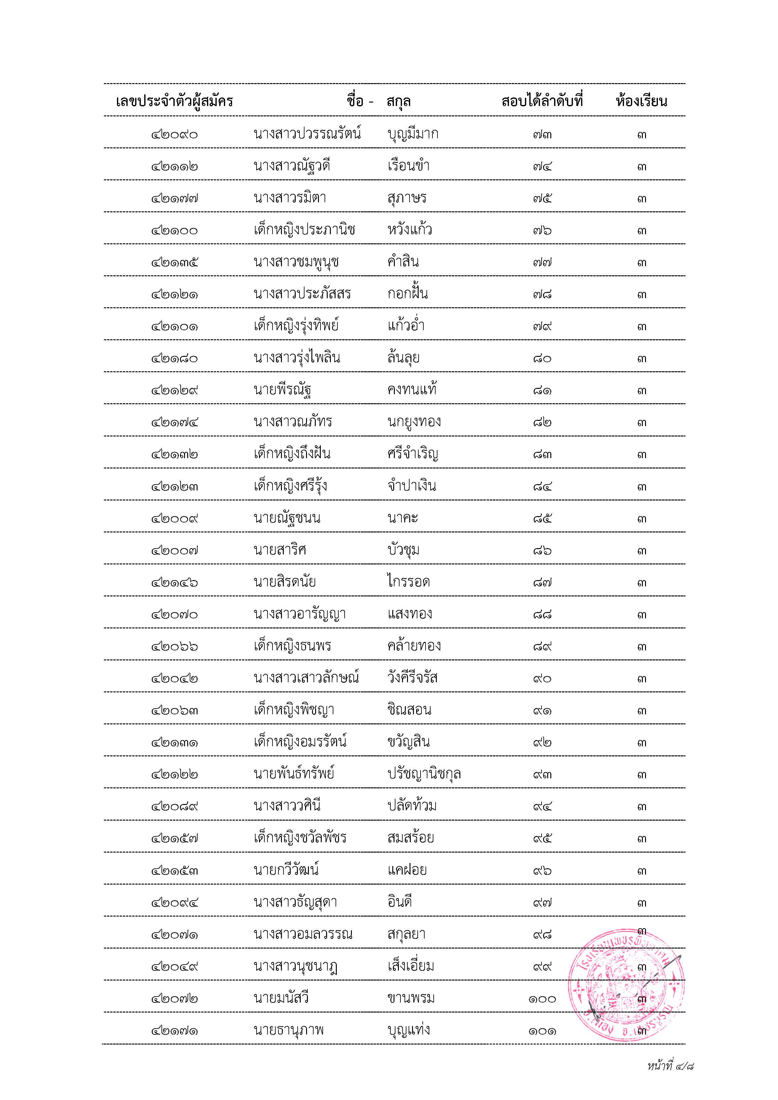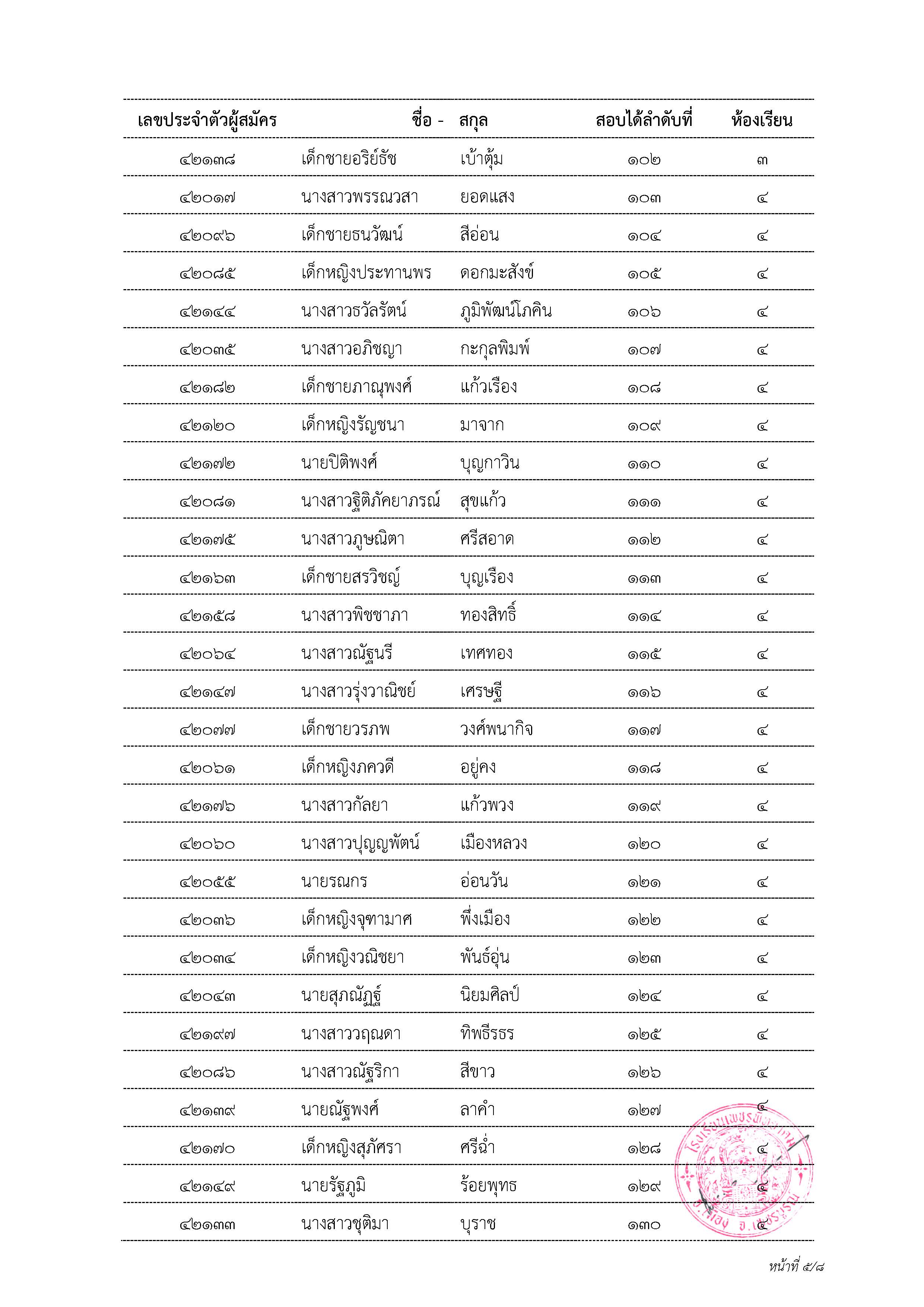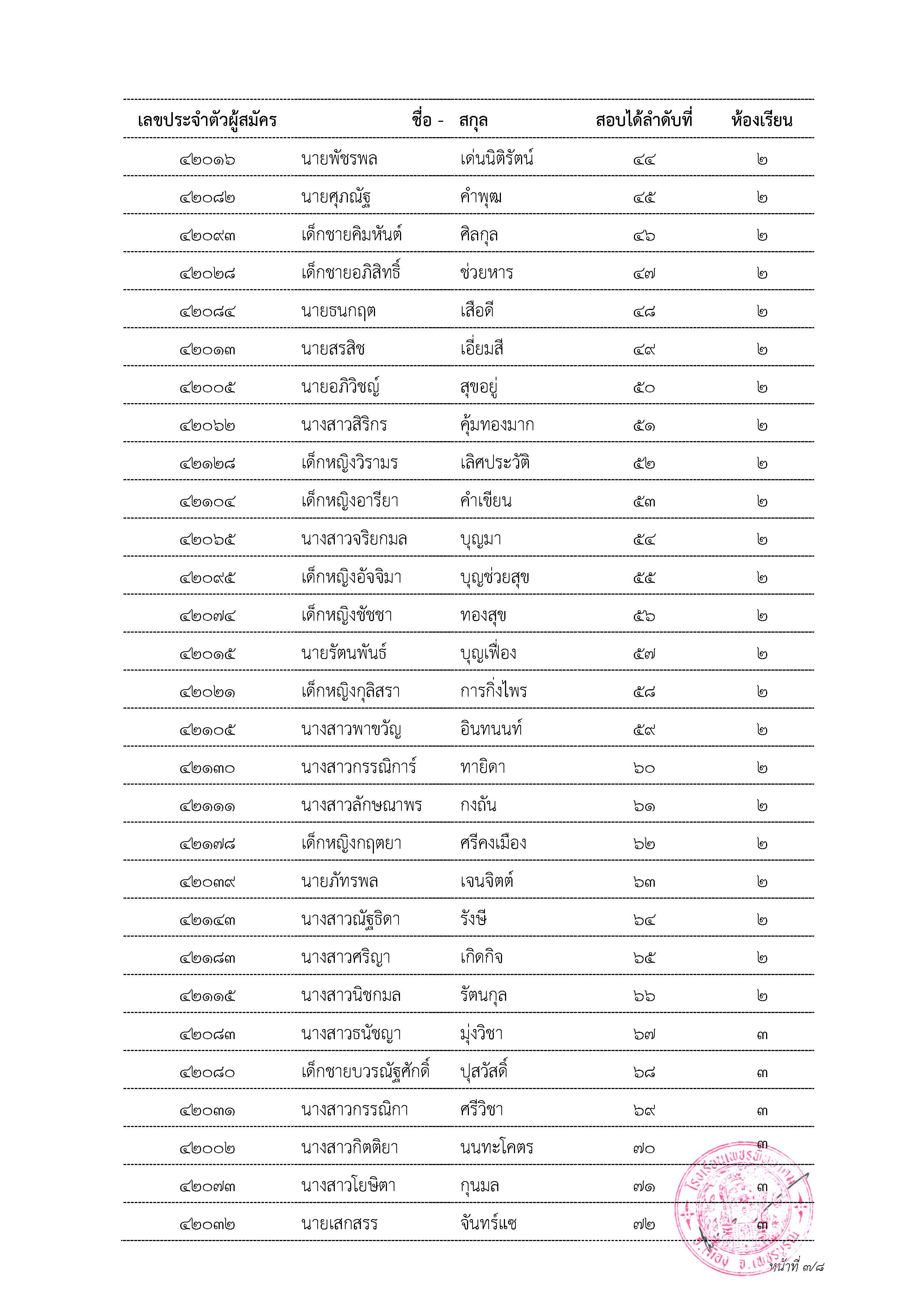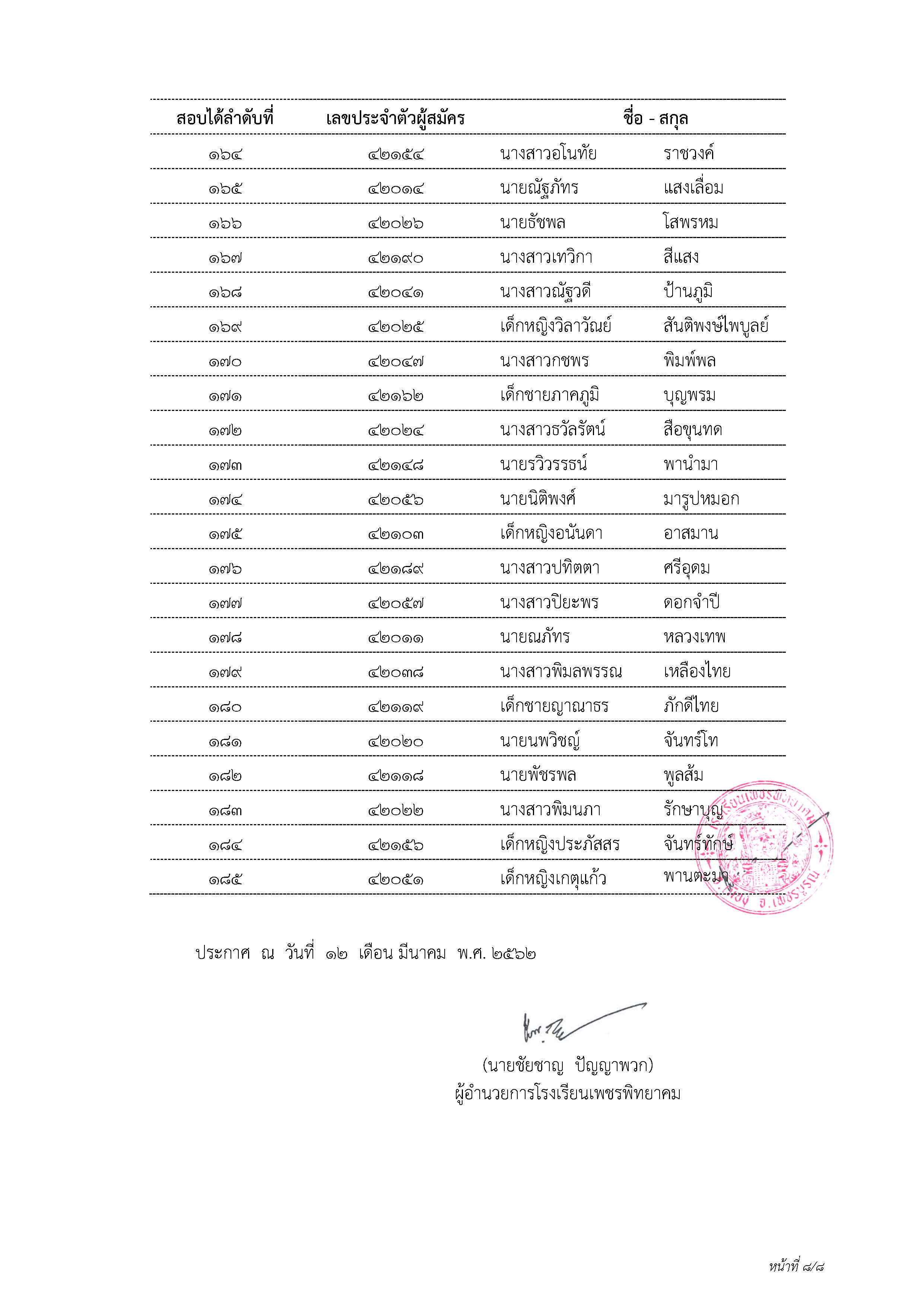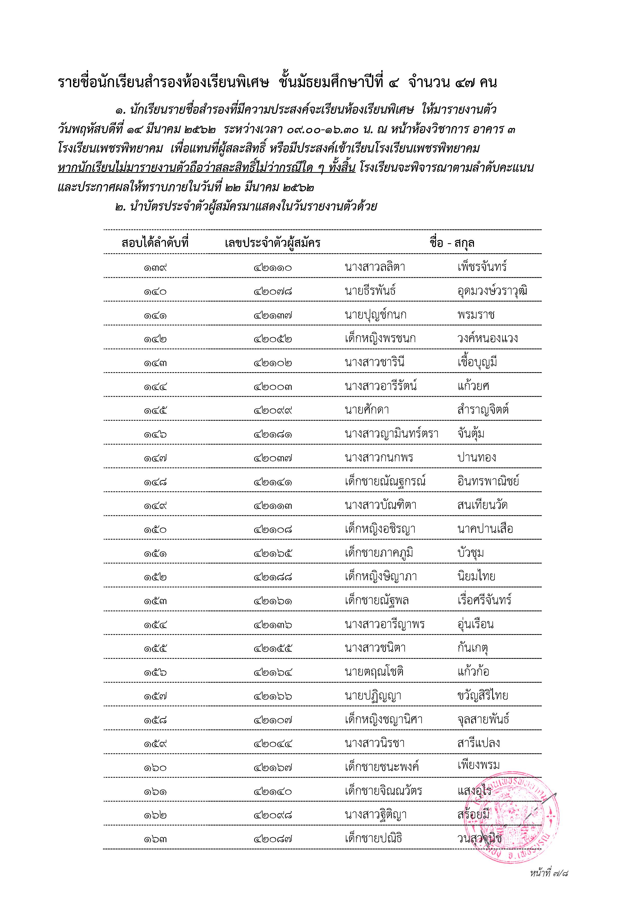 เรื่อง ผลการสอบคัดเลือกนักเรียนเข้าเรียนชั้นมัธยมศึกษาปีที่ ๔ ปีการศึกษา ๒๕๖๒