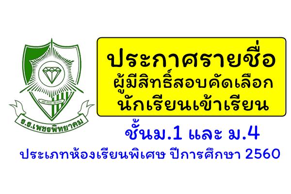 ประกาศรายชื่อนักเรียนมีสิทธิ์สอบ ม.1 และ ม.4 ห้องเรียนพิเศษ ปี 60