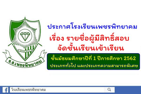 ประกาศโรงเรียนเพชรพิทยาคม เรื่อง รายชื่อผู้มีสิทธิ์สอบจัดชั้นเรียนเข้าเรียนชั้นมัธยมศึกษาปีที่ 1 ปีการศึกษา 2562 ประเภททั่วไป และประเภทความสามารถพิเศษ