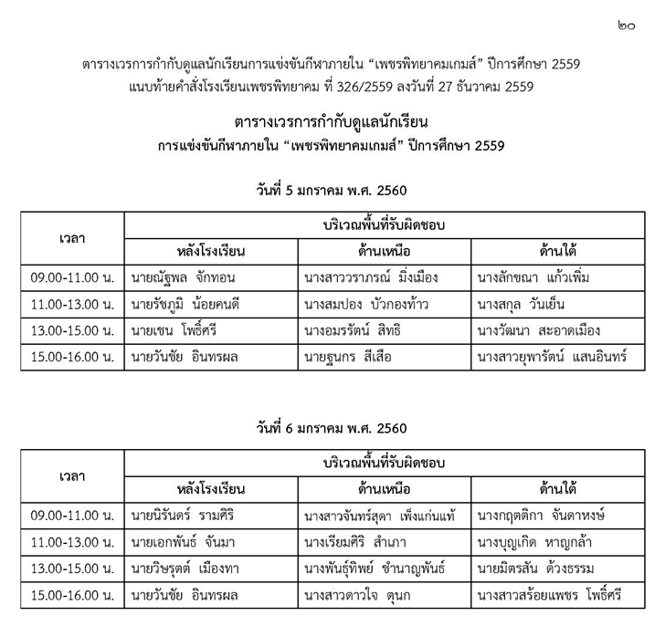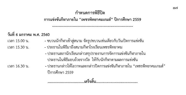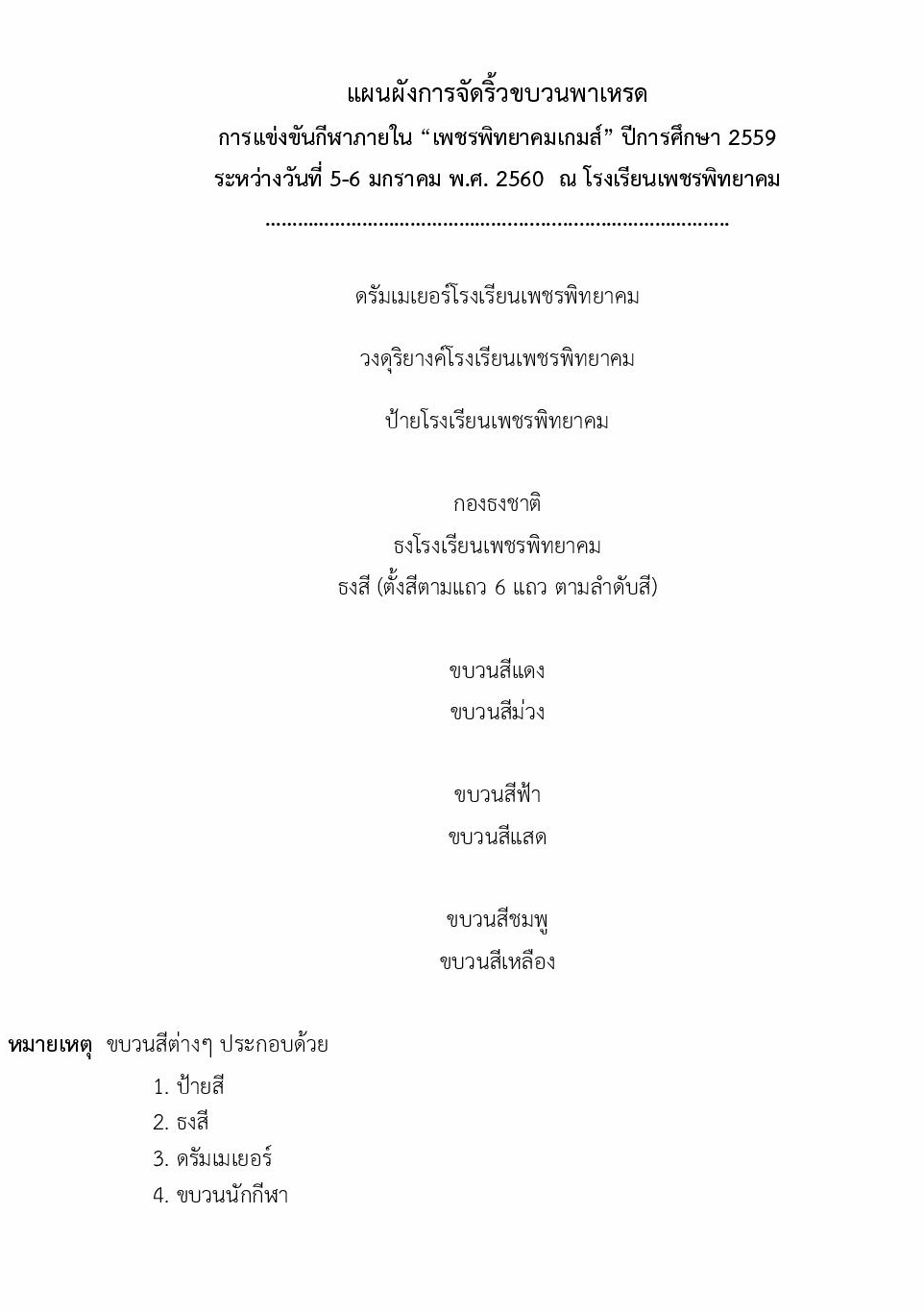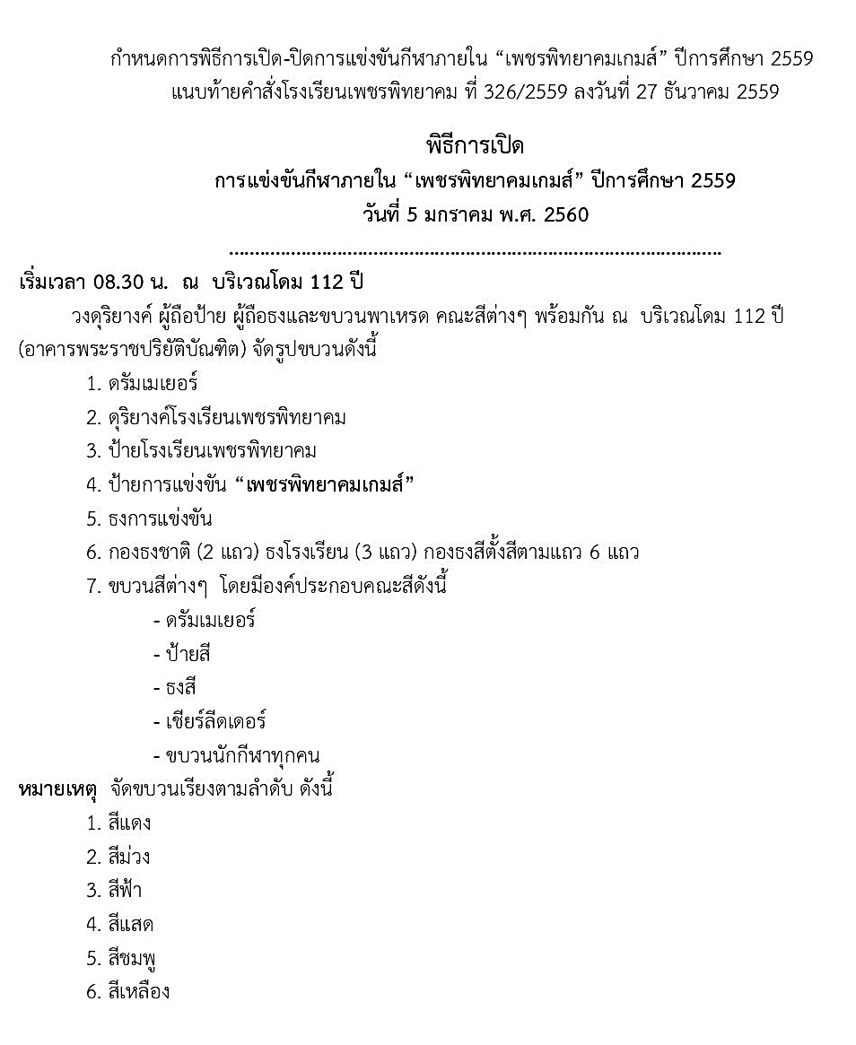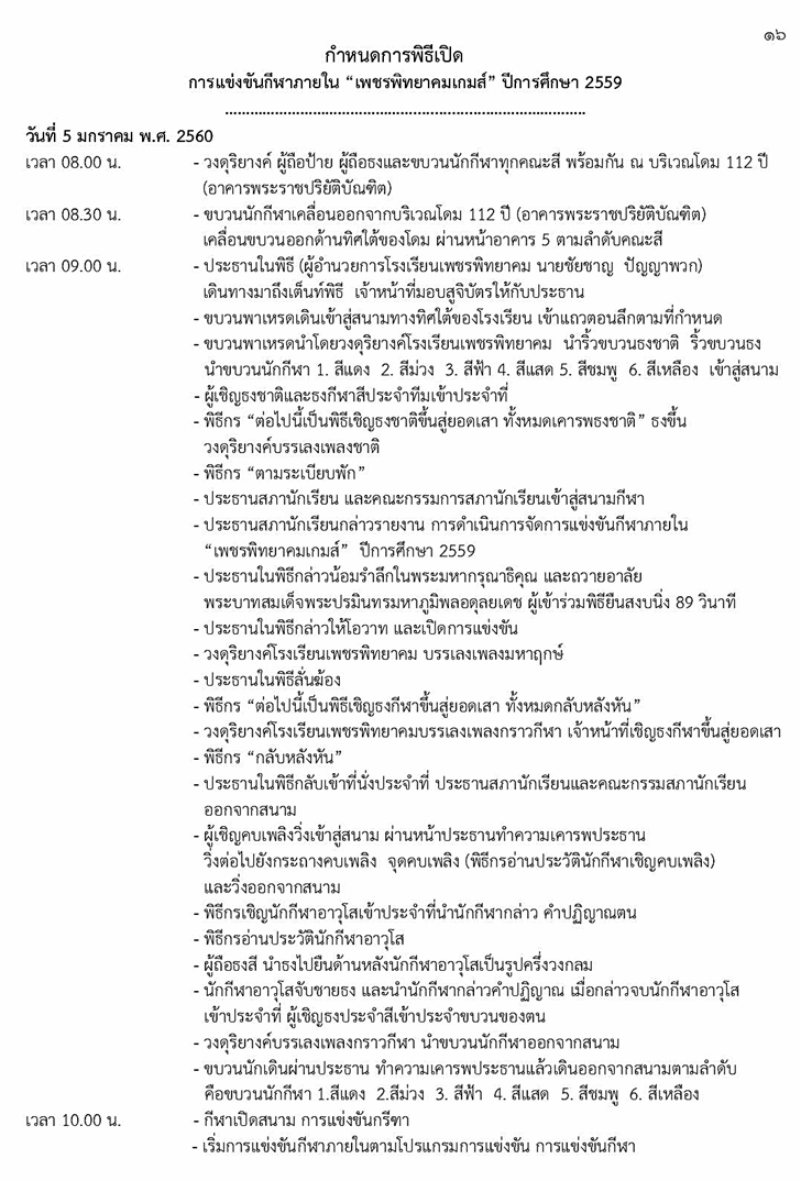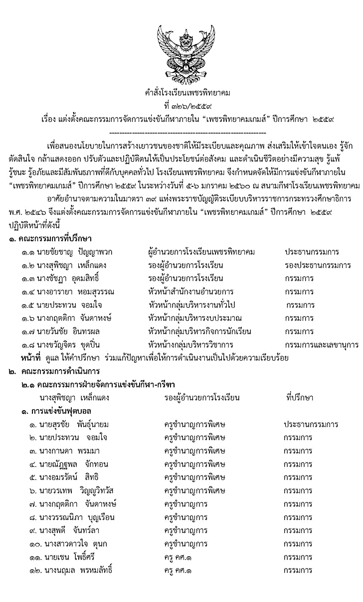 เรื่อง แต่งตั้งคณะกรรมการจัดการแข่งขันกีฬาภายใน "เพชรพิทยาคมเกมส์" ปีการศึกษา 2559