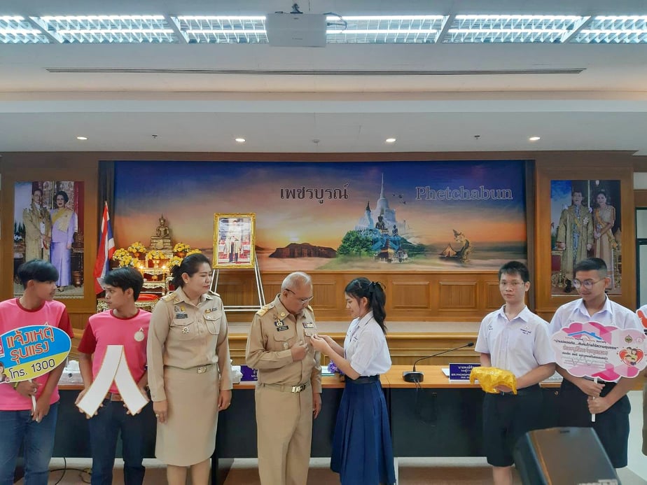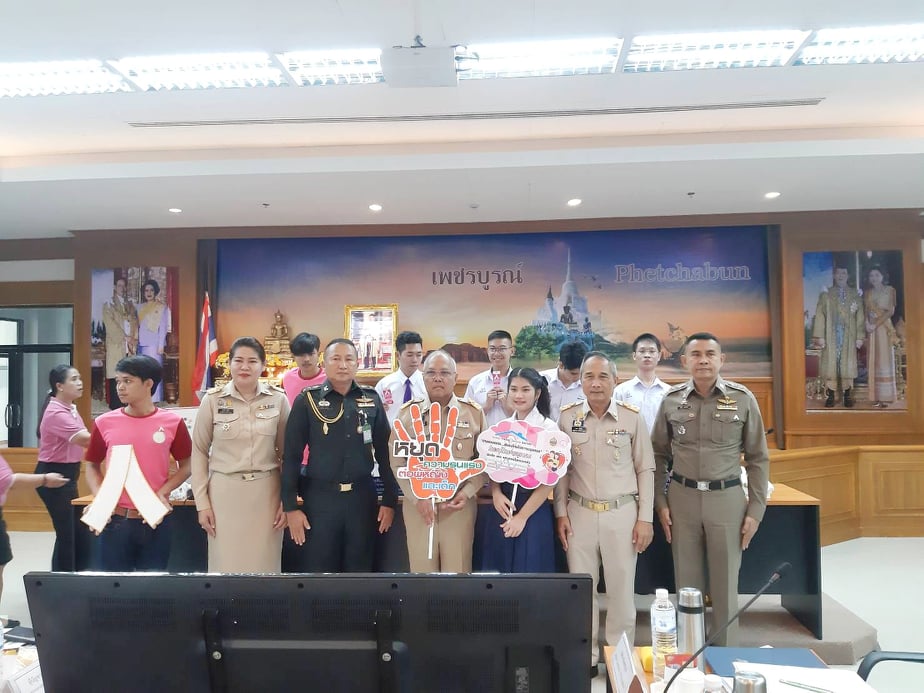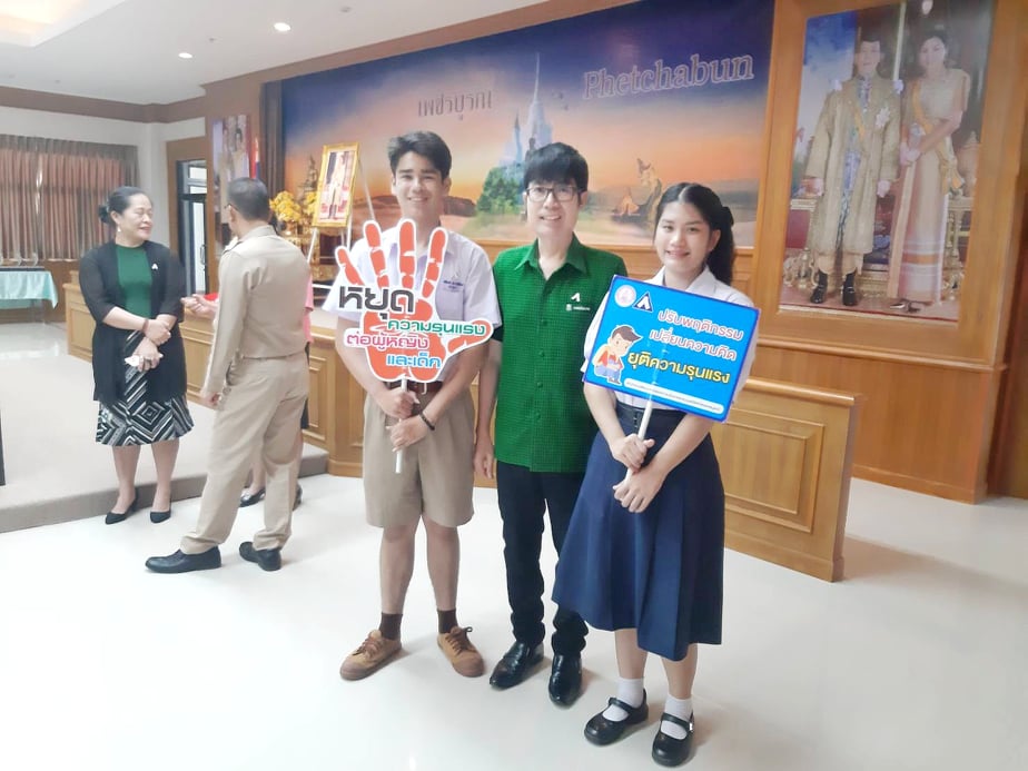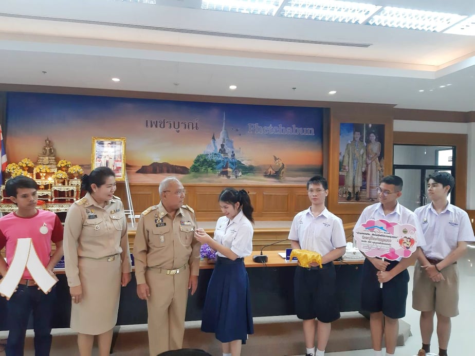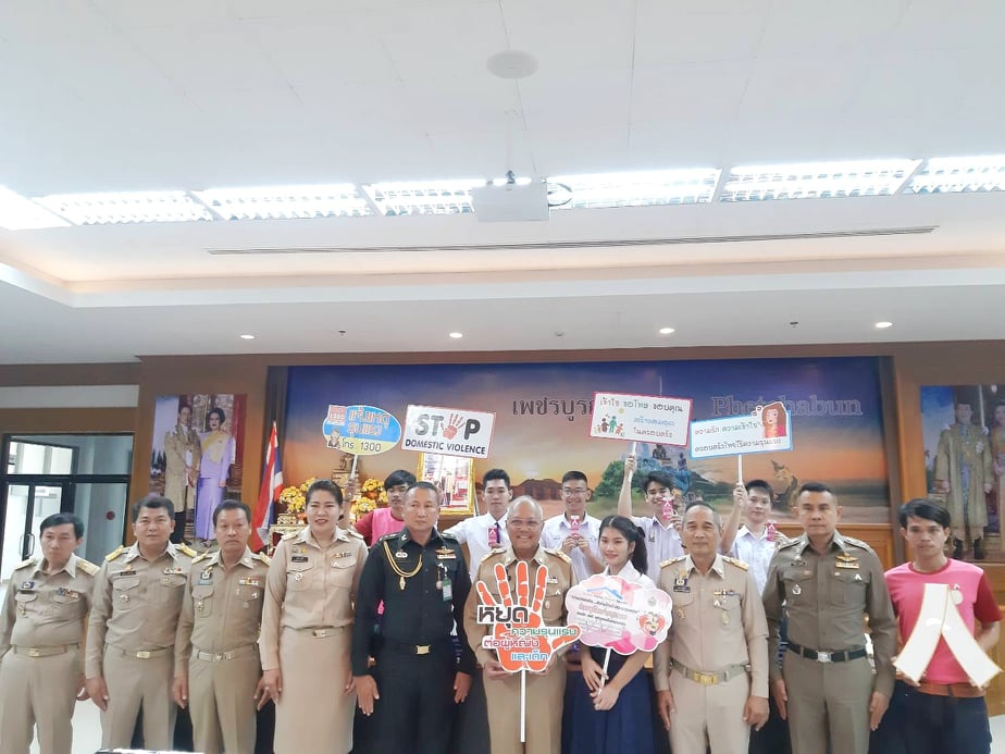 วันพฤหัสบดี ที่ 28 พฤศจิกายน 2562 เยาวชน Phetchabun Young Smart Asean 2019 นางสาวฐิภาพรรณ แก้วเทียนนากรณ์ ชั้น IEP6 และนายกลินท์ สวานซิเกอร์ ชั้น ม.4.11 โรงเรียนเพชรพิทยาคม ร่วมกิจกรรมรณรงค์ยุติความรุนแรงต่อเด็ก สตรี และบุคคลในครอบครัว พร้อมทั้งการติดเข็มกลัดริบบิ้นสีขาวให้แก่ผู้บริหารจังหวัด และหัวหน้าส่วนราชการจังหวัดเพชรบูรณ์ ประธานในพิธีโดย นายสืบศักดิ์ เอี่ยมวิจารณ์ ผู้ว่าราชการจังหวัดเพชรบูรณ์