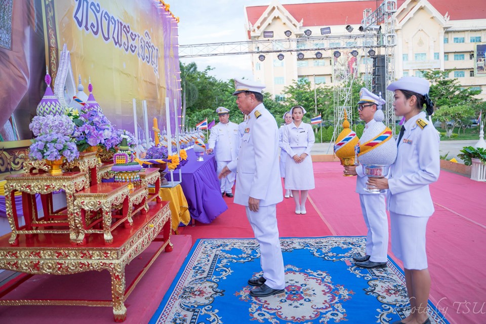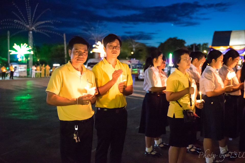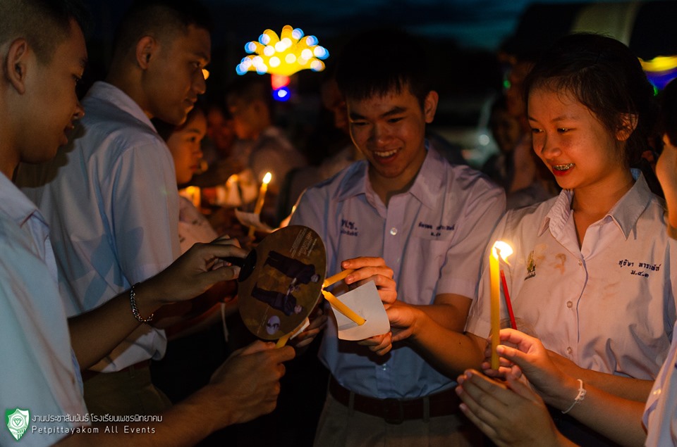 นายชัยชาญ ปัญญาพวก ผู้อำนวยการโรงเรียนเพชรพิทยาคมพร้อมด้วยนายนิรุทธ์ แก้วนิคม รองผู้อำนวยการโรงเรียน นำตัวแทนคณะครูและนักเรียนระดับชั้นมัธยมศึกษาปีที่ 5 ร่วมพิธีถวายเครื่องสักการะและจุดเทียนถวายพระพรชัยมงคล