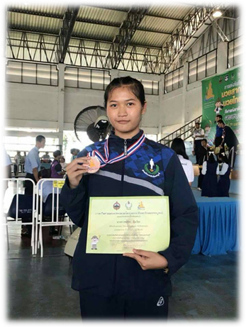 4. กีฬามวยไทยสมัครเล่น รุ่นไลท์ฟลายเวท น้ำหนักไม่เกิน 48 กิโลกรัม (นางสาวชลธิชา อ้นเวียง ม.6.8)