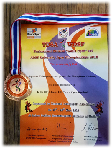 - กีฬาลีลาศ ประเภท Standard Junior 2 Class A Close (เด็กชายศุภากร เจียรพงษ์ไพศาล ม 3.1และเด็กหญิงรุ้งตะวัน จันทร์เที่ยง ม.2.1)