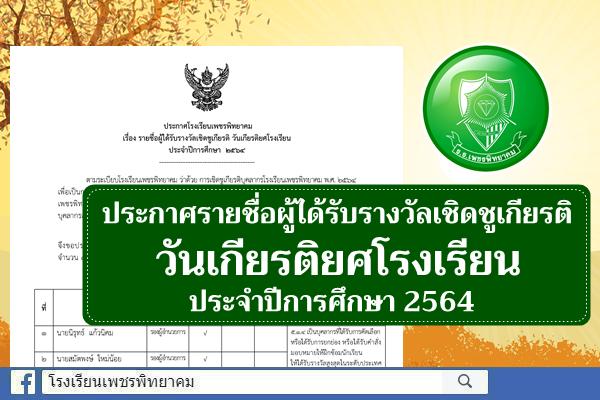 ประกาศโรงเรียนเพชรพิทยาคม เรื่อง รายชื่อผู้ได้รับรางวัลเชิดชูเกียรติ วันเกียรติยศโรงเรียน ประจำปีการศึกษา 2564