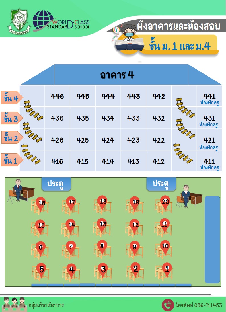 ผังอาคารและห้องสอบ ชั้น ม.1 และ ม.4
