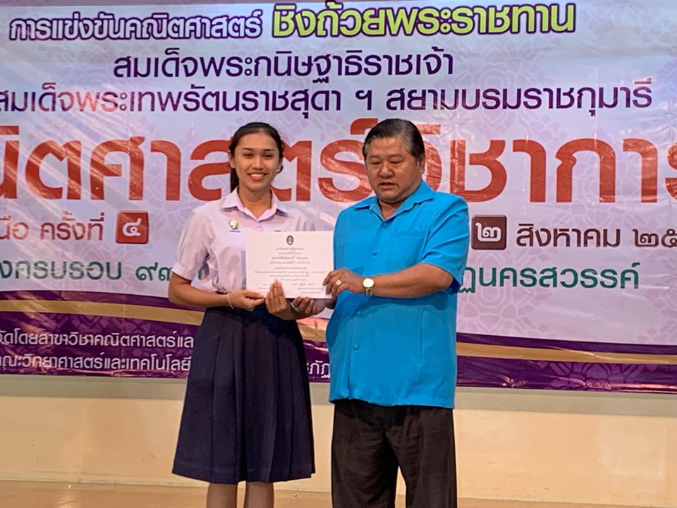 1. นางสาวนภสร คำวิฑูรย์ ชั้นมัธยมศึกษาปีที่ 6.2 รับรางวัลรองชนะเลิศอันดับ2 ระดับเหรียญทอง การแข่งขันคิดเลขเร็ว ระดับ ม.ปลาย (จากผู้เข้าแข่งขัน 174 คน) ผู้ฝึกสอน ครูอำไพ แสงเรืองเดช