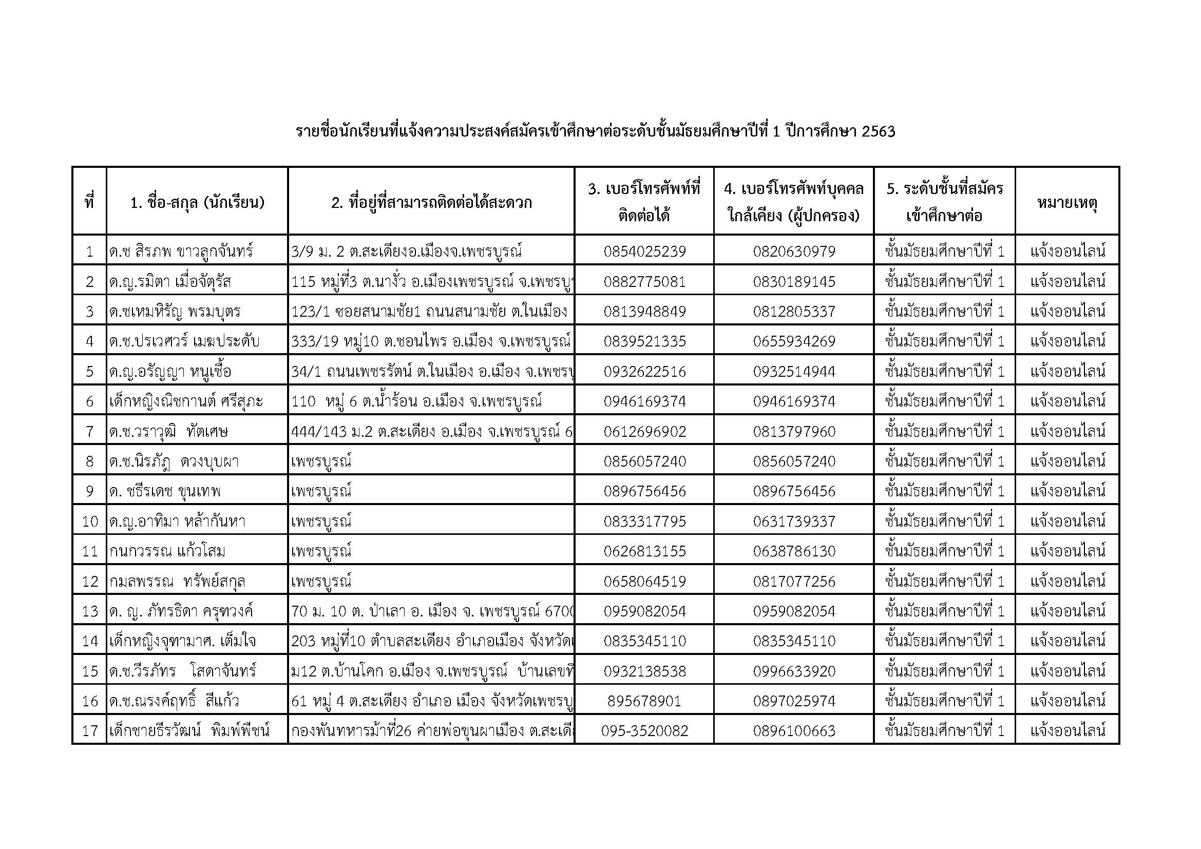 แบบสำรวจความประสงค์สมัครเข้าศึกษาต่อระดับชั้น ม.1 และ ชั้น ม.4 (รอบทั่วไป) ปีการศึกษา 2563 โรงเรียนเพชรพิทยาคม