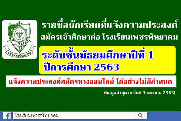 รายชื่อนักเรียนที่แจ้งความประสงค์สมัครเข้าศึกษาต่อระดับชั้นมัธยมศึกษาปีที่ 1 ปีการศึกษา 2563 (ข้อมูล ณ วันที่ 3 เมษายน 2563)