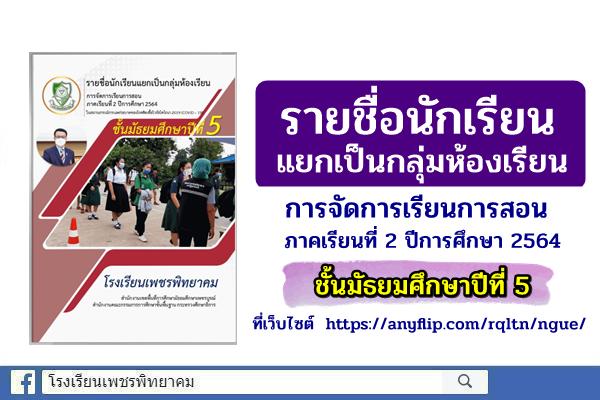 รายชื่อนักเรียนแยกเป็นกลุ่มห้องเรียน การจัดการเรียนการสอน ภาคเรียนที่ 2 ปีการศึกษา 2564 ชั้นมัธยมศึกษาปีที่ 5