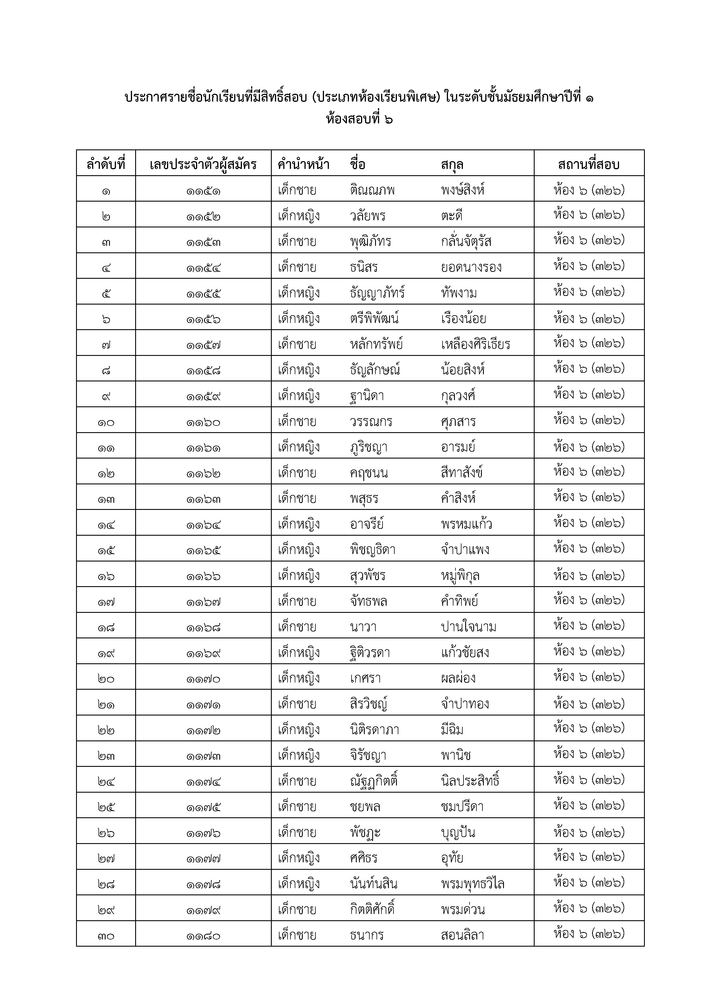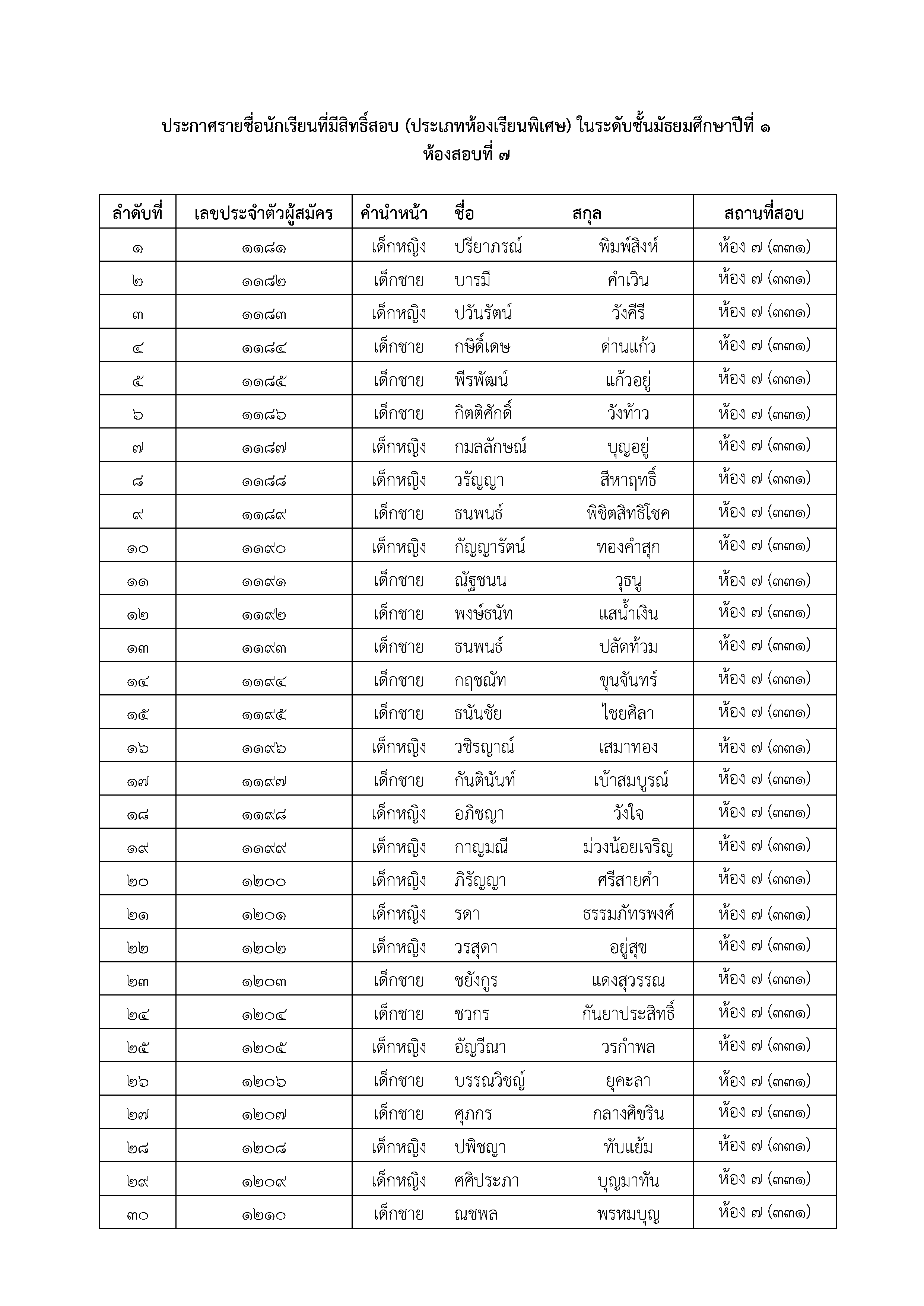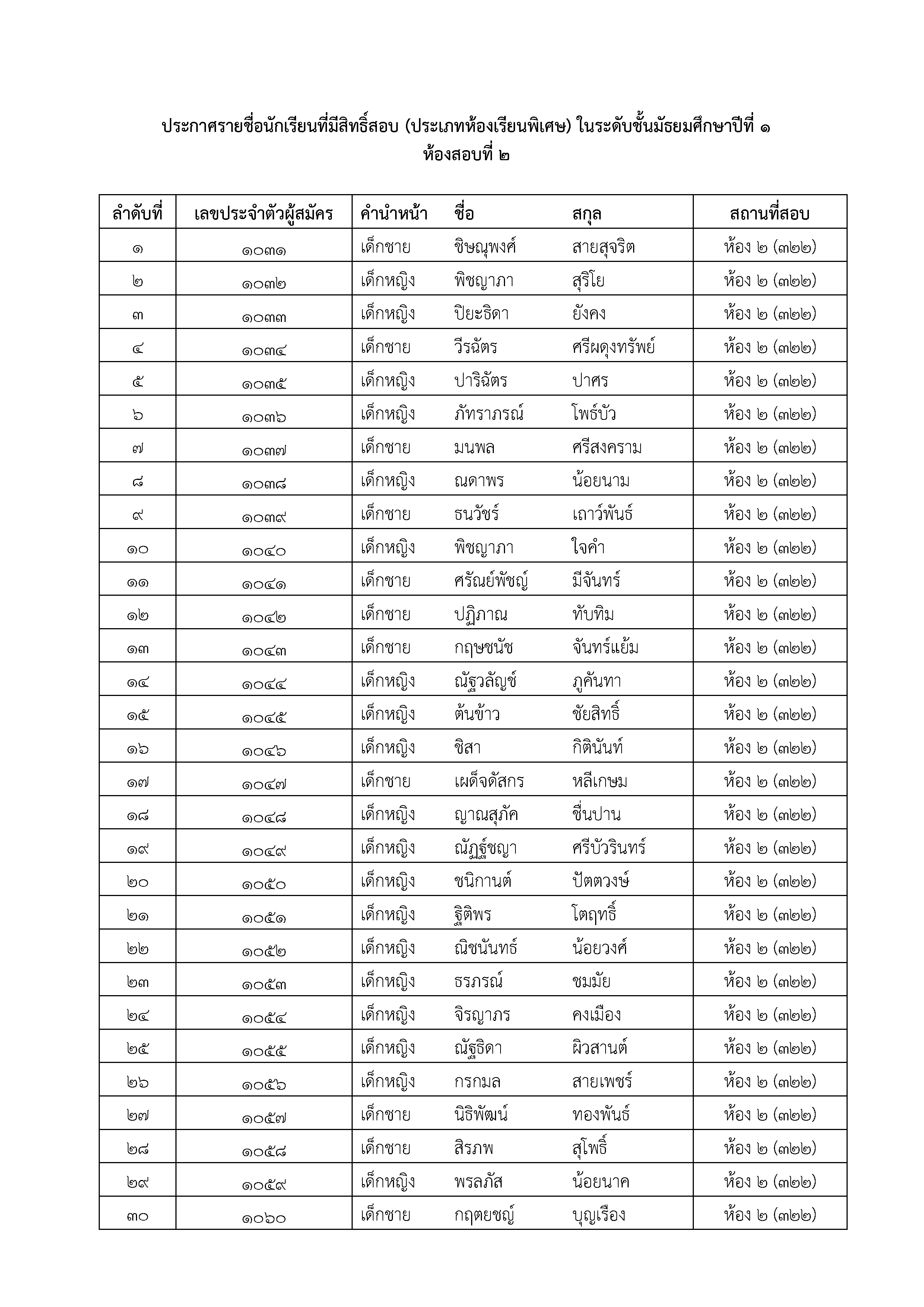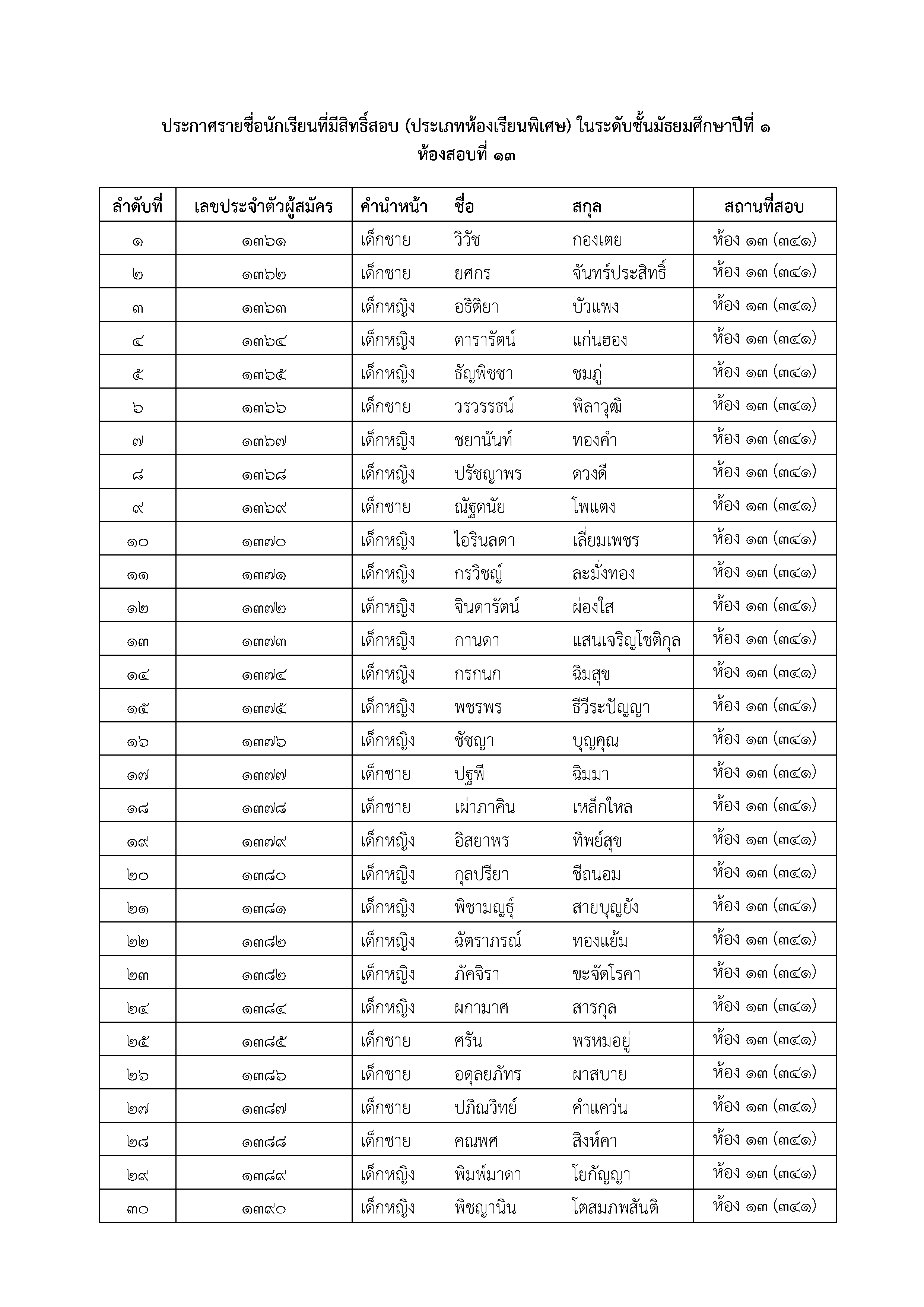 เรื่อง ประกาศรายชื่อผู้มีสิทธิ์สอบคัดเลือก ระดับชั้นมัธยมศึกษาปีที่ 1