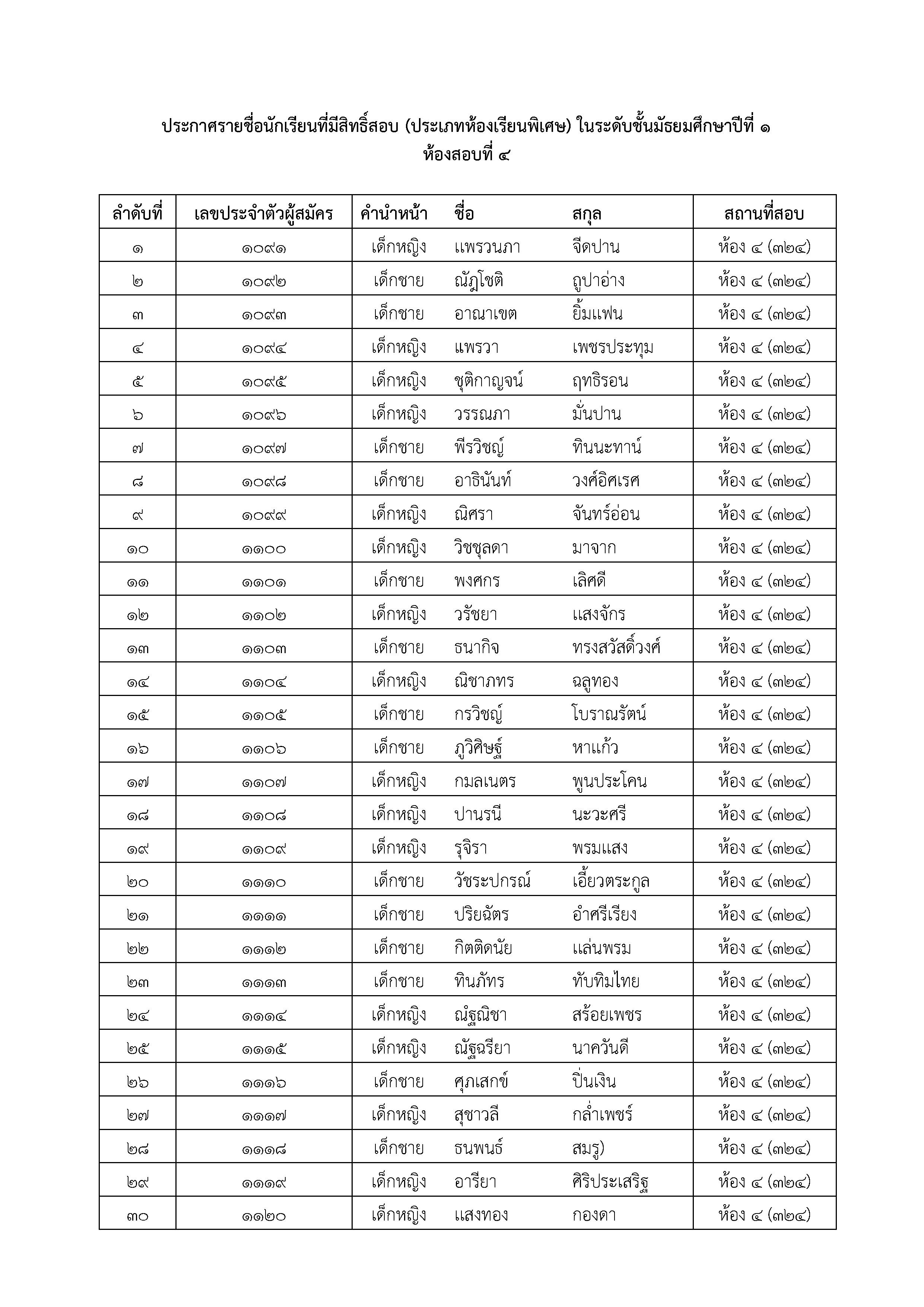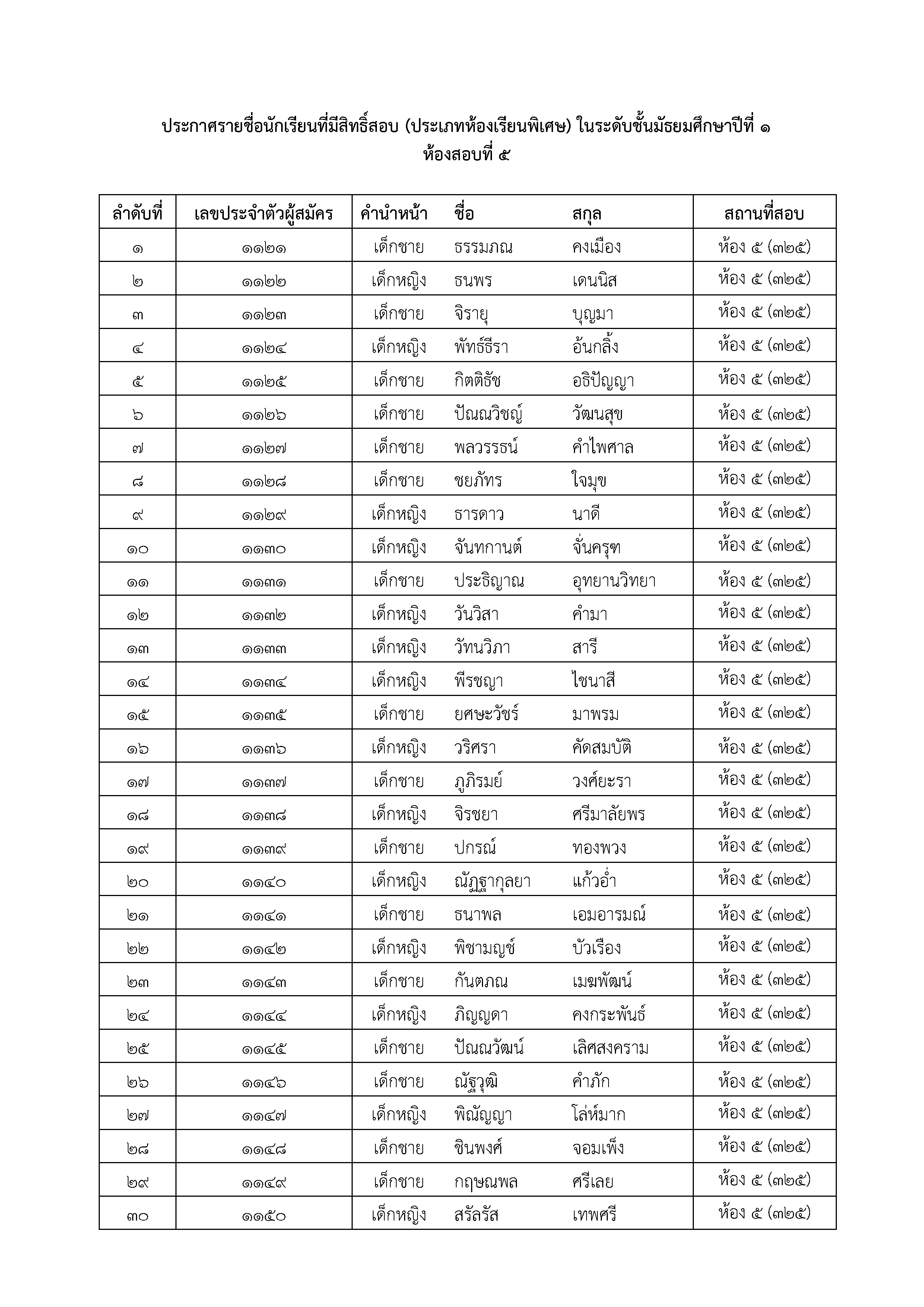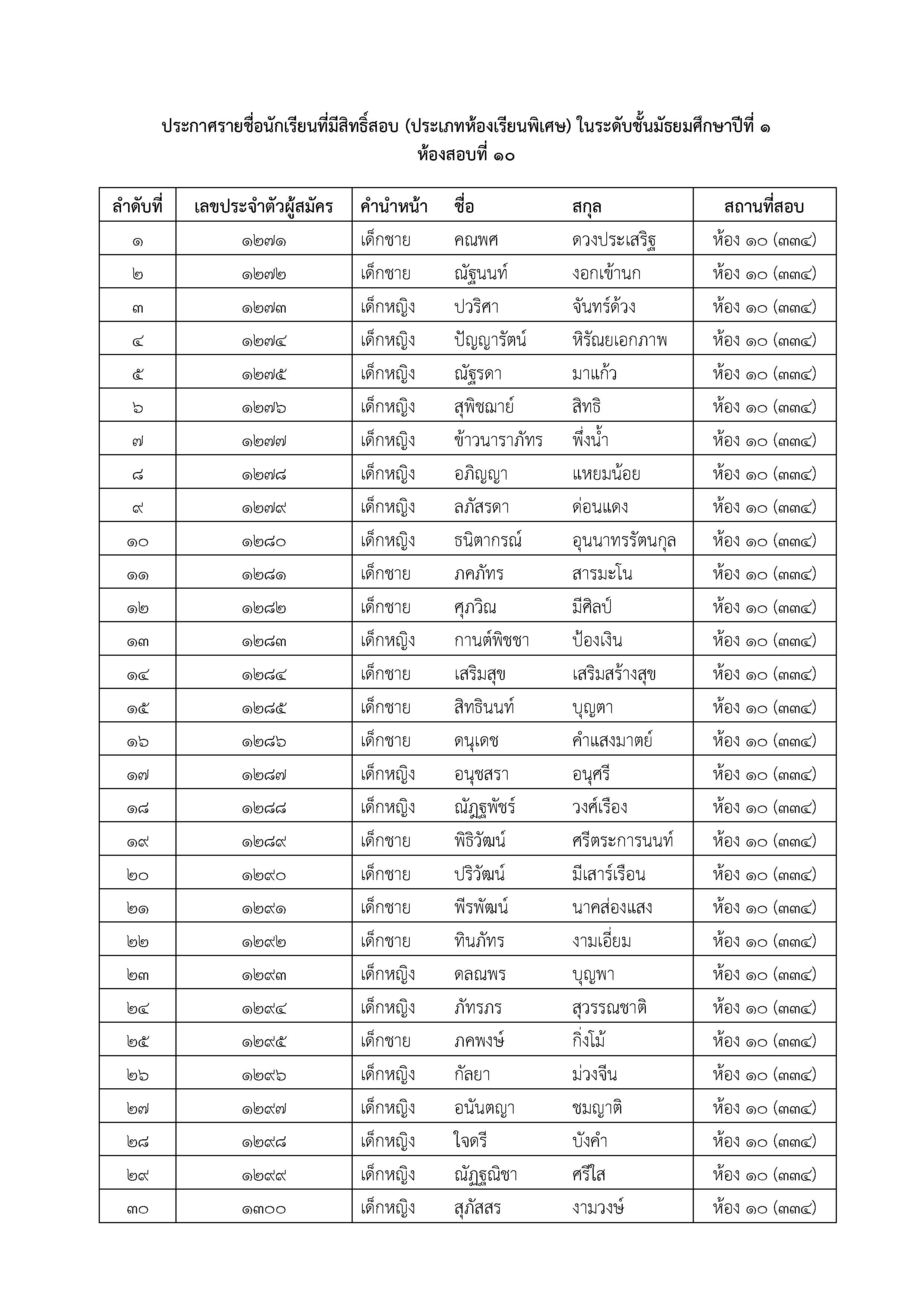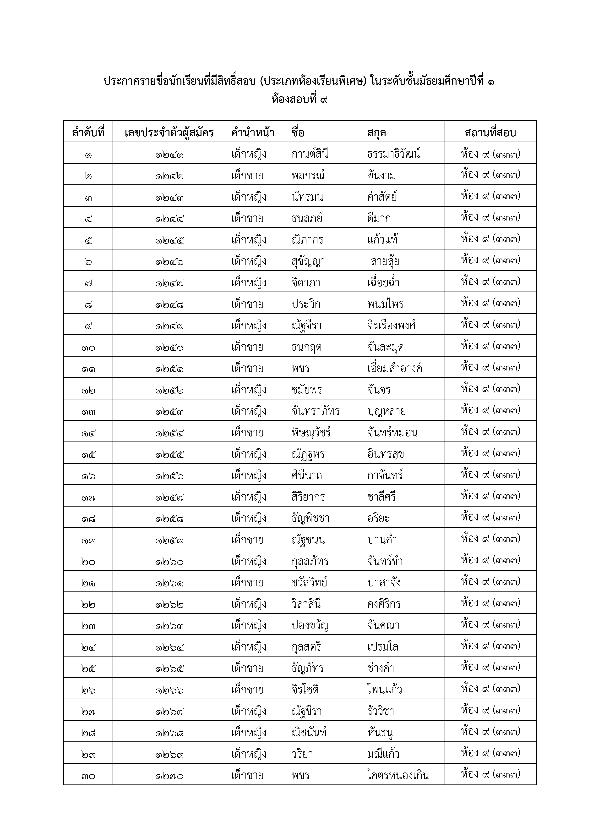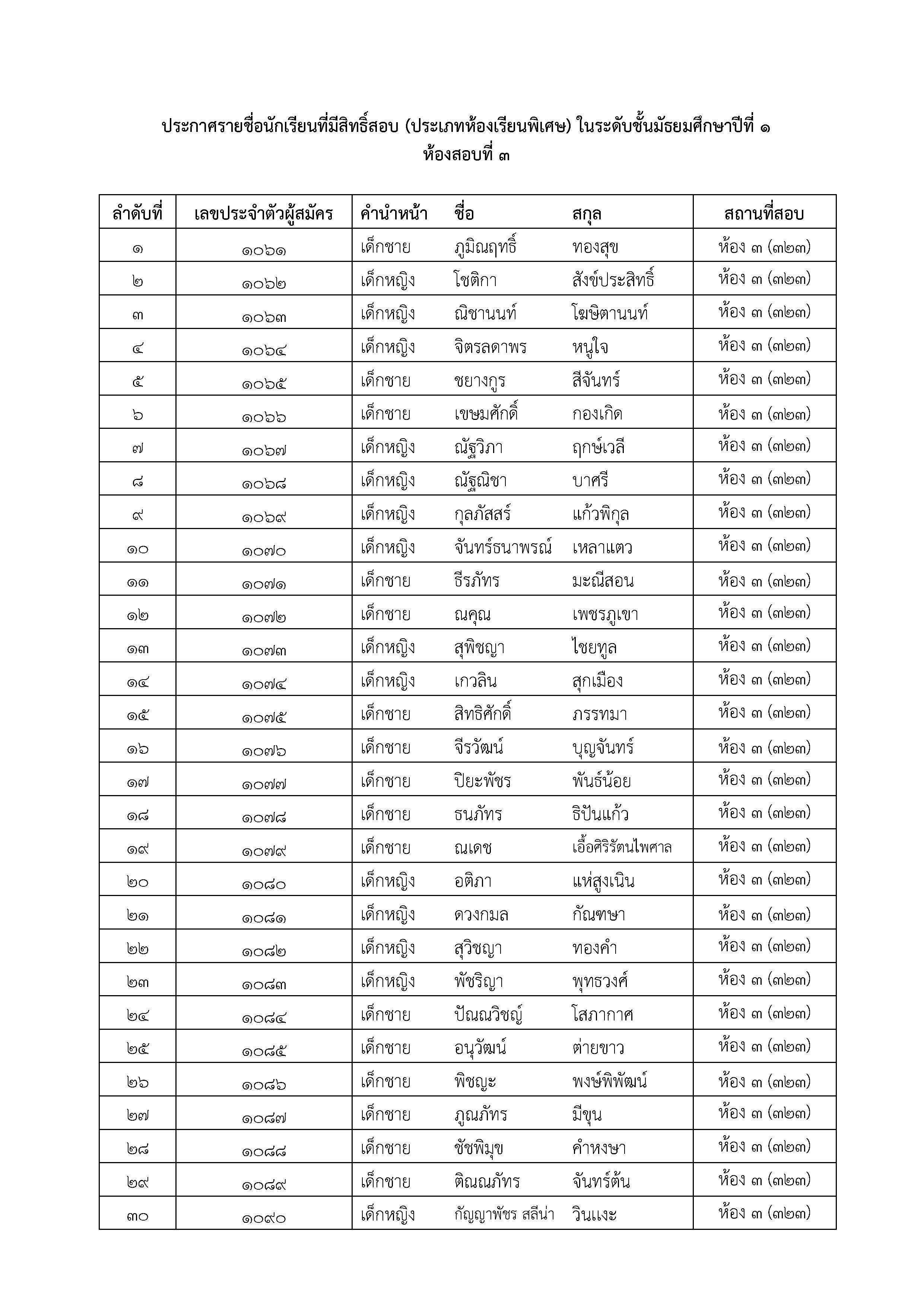 ปีการศึกษา 2568 (ประเภทห้องเรียนพิเศษ) วัน เวลาและสถานที่สอบ