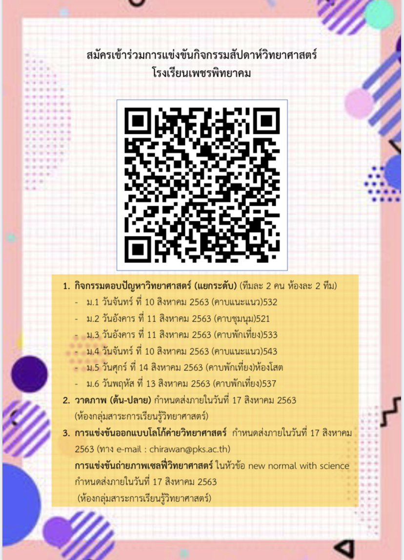 โรงเรียนเพชรพิทยาคม เชิญชวนนักเรียนสมัครเข้าร่วมแข่งขันกิจกรรมสัปดาห์วิทยาศาสตร์