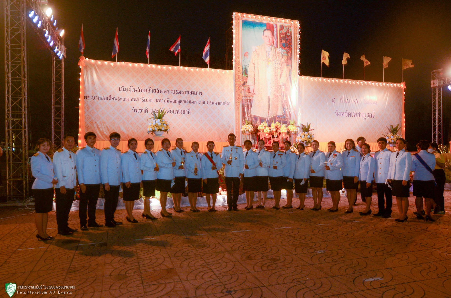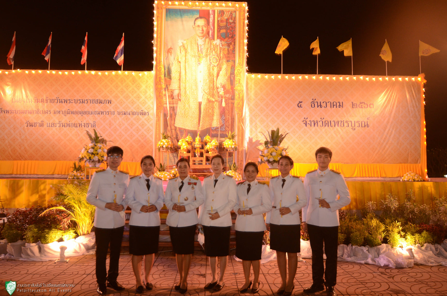 ผู้บริหาร คณะครูโรงเรียนเพชรพิทยาคม ร่วมพิธีจุดเทียนเพื่อสดุดีพระเกียรติคุณและน้อมรำลึกในพระมหากรุณาธิคุณ ของพระบาทสมเด็จพระบรมชนกาธิเบศร มหาภูมิพลอดุลยเดชมหาราช บรมนาถบพิตร เวลา 18.00 น. ณ บริเวณหน้าศาลากลางจังหวัดเพชรบูรณ์