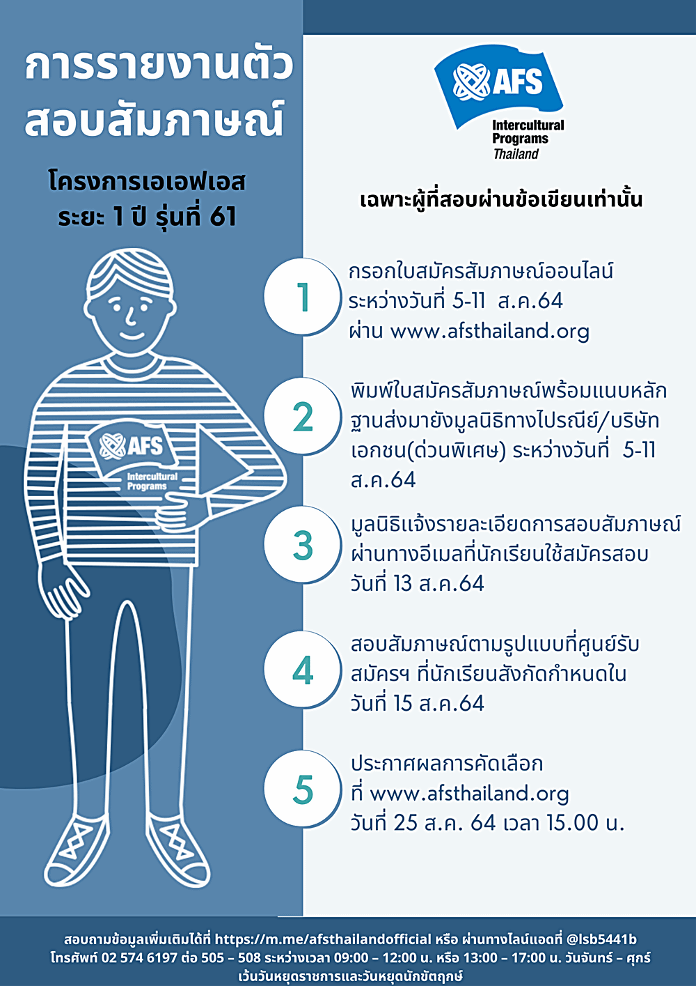 นักเรียนสามารถศึกษาข้อมูลเพิ่มเติมได้ที่ http://www.afsthailand.org