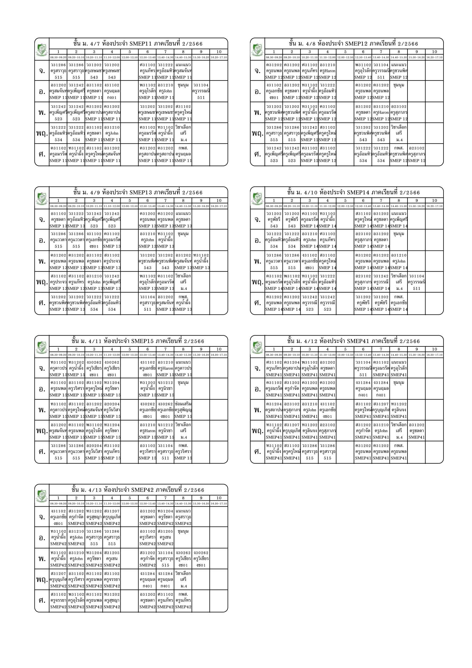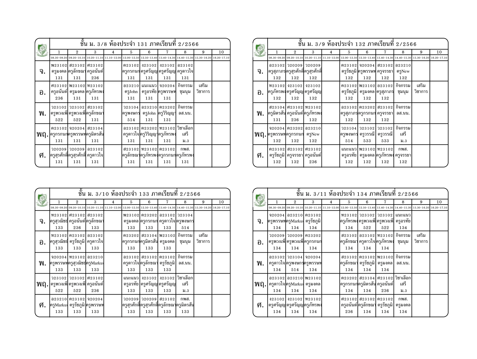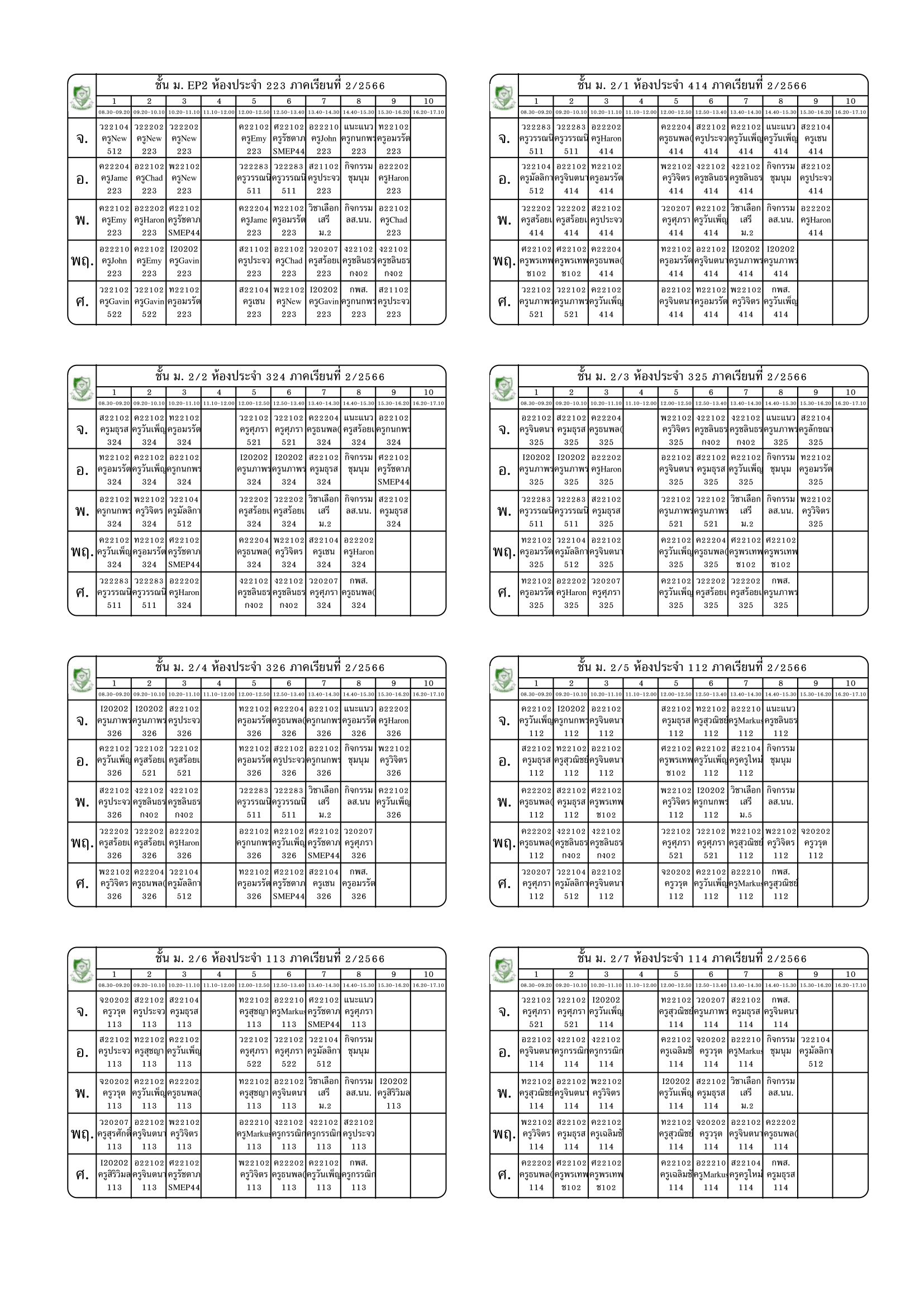 ตารางเรียนนักเรียนชั้น ม.1-ม.6 ภาคเรียนที่ 2 ปีการศึกษา 2566 (ปรับใหม่) เริ่มใช้ตั้งแต่ 6 พ.ย.2566