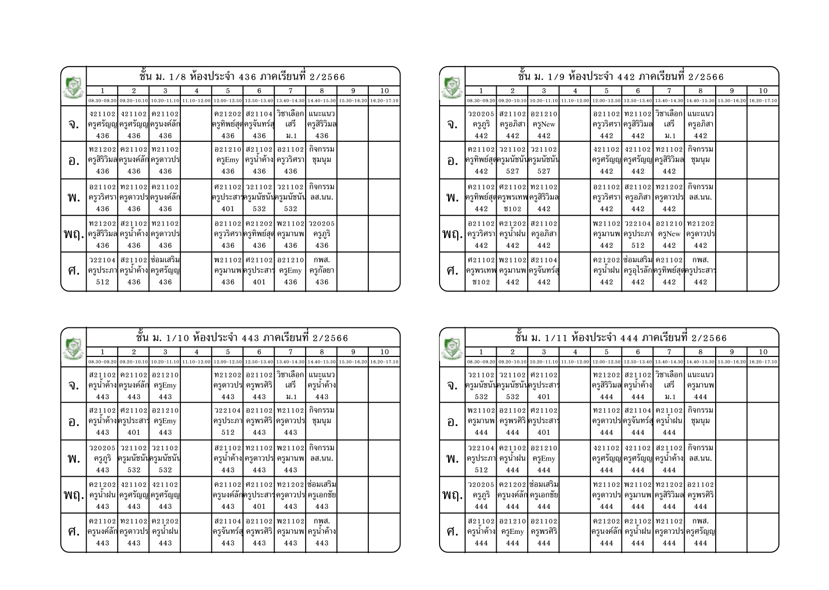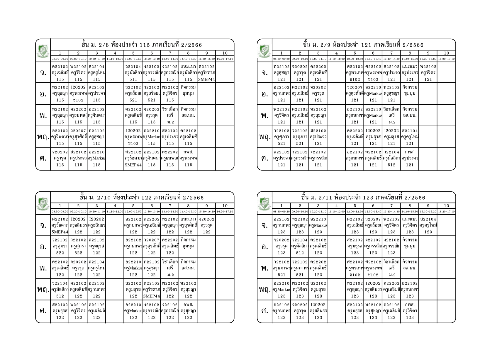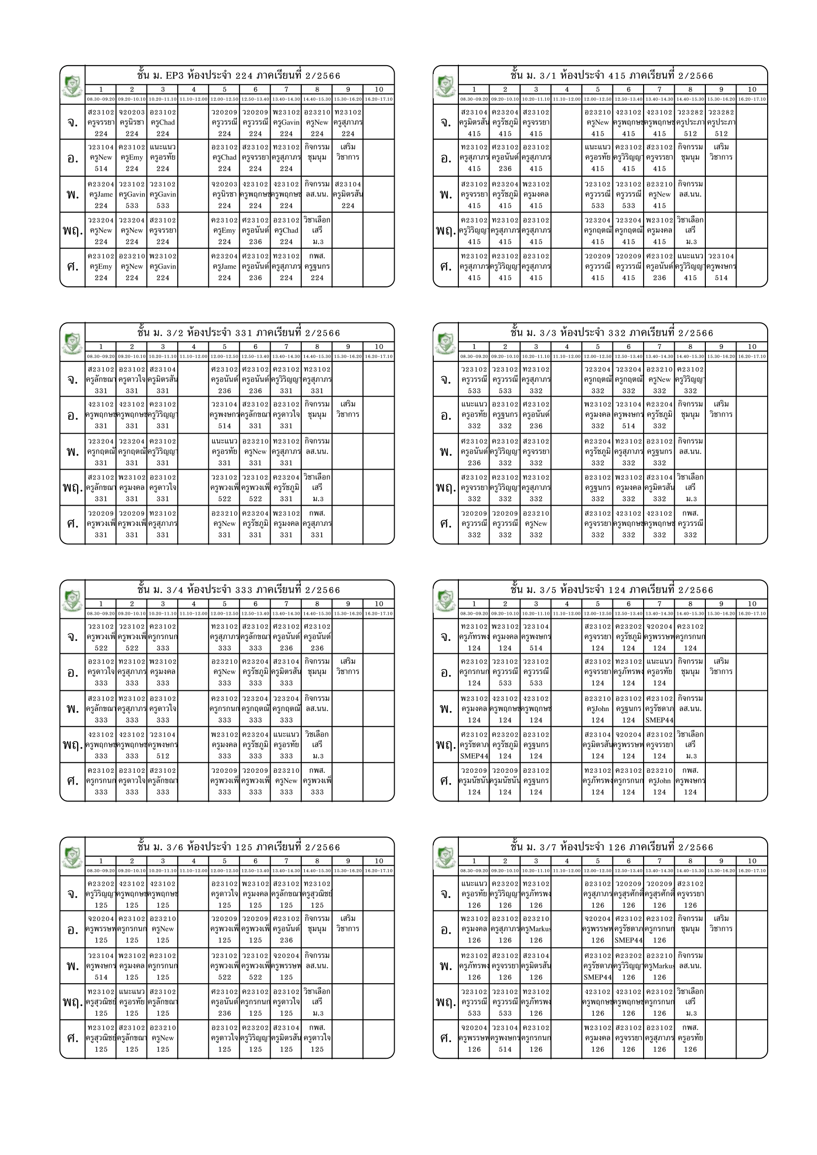 ตารางเรียนนักเรียนชั้น ม.1-ม.6 ภาคเรียนที่ 2 ปีการศึกษา 2566 (ปรับใหม่) เริ่มใช้ตั้งแต่ 6 พ.ย.2566