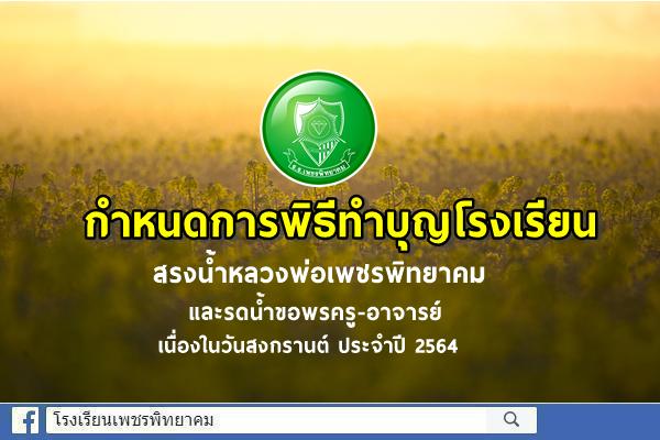 กำหนดการพิธีทำบุญโรงเรียน สรงน้ำหลวงพ่อเพชรพิทยาคม และรดน้ำขอพรครู-อาจารย์ เนื่องในวันสงกรานต์ ประจำปี 2564