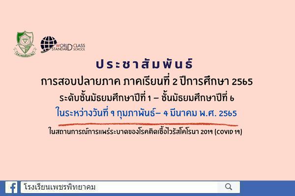 การสอบปลายภาค ภาคเรียนที่ 2 ปีการศึกษา 2565 โรงเรียนเพชรพิทยาคม