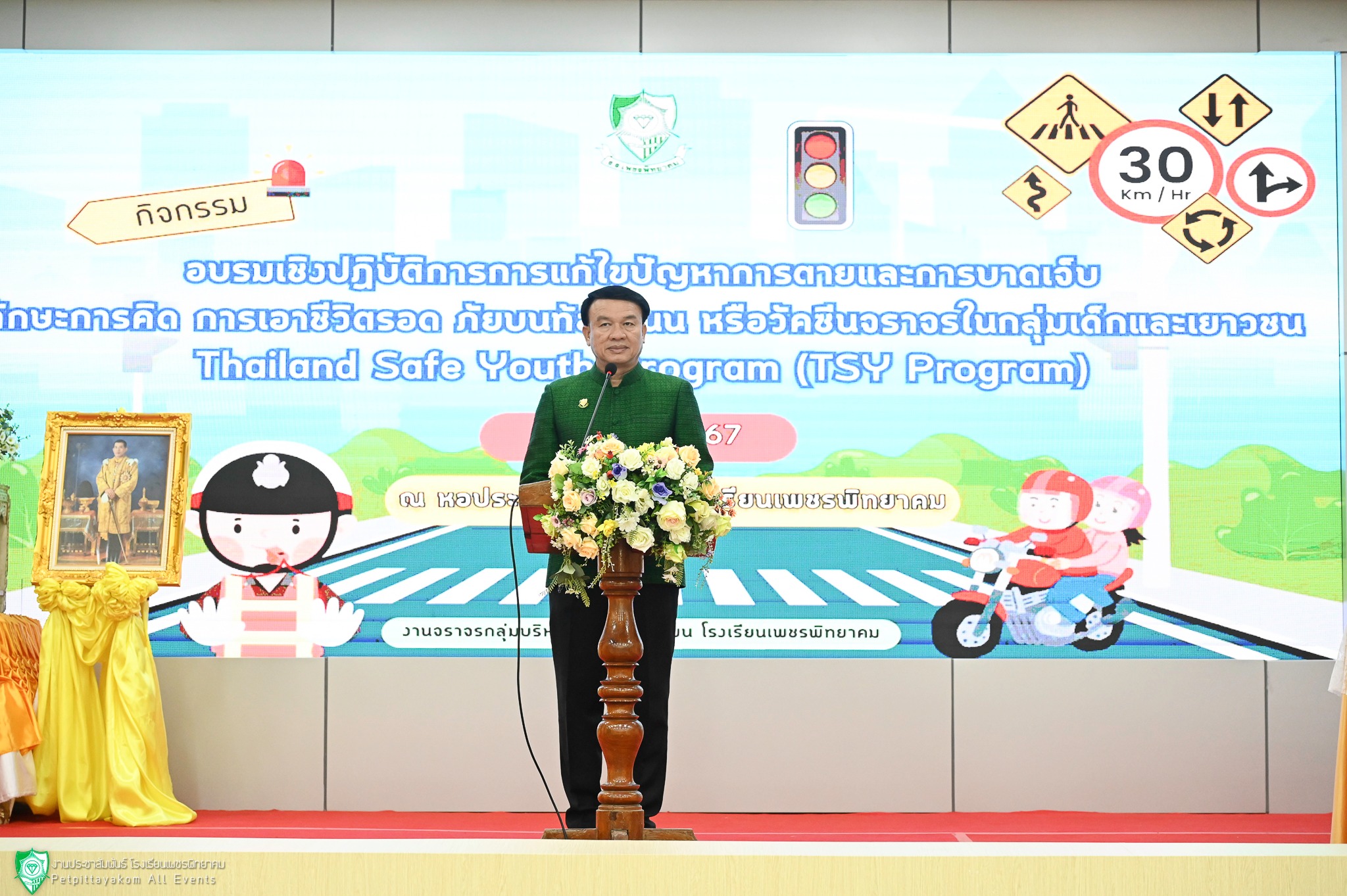โรงเรียนเพชรพิทยาคมดำเนินการจัดกิจกรรมการอบรมเชิงปฏิบัติการการแก้ปัญหาการตาย และบาดเจ็บ ทักษะการคิด การเอาชีวิตรอดภัยบนท้องถนน หรือวัคซีนจราจรในกลุ่มเด็กและเยาวชน (TSY Program) จัดขึ้นโดยมีวัตถุประสงค์ เพื่อให้ส่งเสริมทักษะการคิดของเด็กและเยาวชนให้สามารถเอาชีวิตรอดจากภัยบนท้องถนน มีทัศนคติที่ถูกต้องด้านความปลอดภัยและมีวินัยจราจรในการใช้รถใช้ถนน