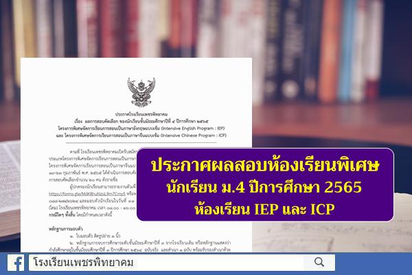 ตามที่ โรงเรียนเพชรพิทยาคมเปิดรับสมัครนักเรียนเข้าเรียนชั้นมัธยมศึกษาปีที่ 4 ปีการศึกษา 2565 ประเภทโครงการพิเศษจัดการเรียนการสอนเป็นภาษาอังกฤษแบบเข้ม (Intensive English Program : IEP) และ โครงการพิเศษจัดการเรียนการสอนเป็นภาษาจีนแบบเข้ม (Intensive Chinese Program : ICP) ระหว่างวันที่ 19-23 กุมภาพันธ์ พ.ศ. 2565 ได้ดำเนินการสอบคัดเลือกเมื่อวันที่ 7 มีนาคม พ.ศ. 2565 โดยมีนักเรียนผ่านการสอบคัดเลือกจำนวน 20 คน ดังรายชื่อ
