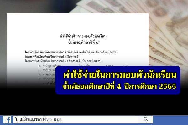ค่าใช้จ่ายในการมอบตัวนักเรียน ชั้นมัธยมศึกษาปีที่ 4 ปีการศึกษา 2565