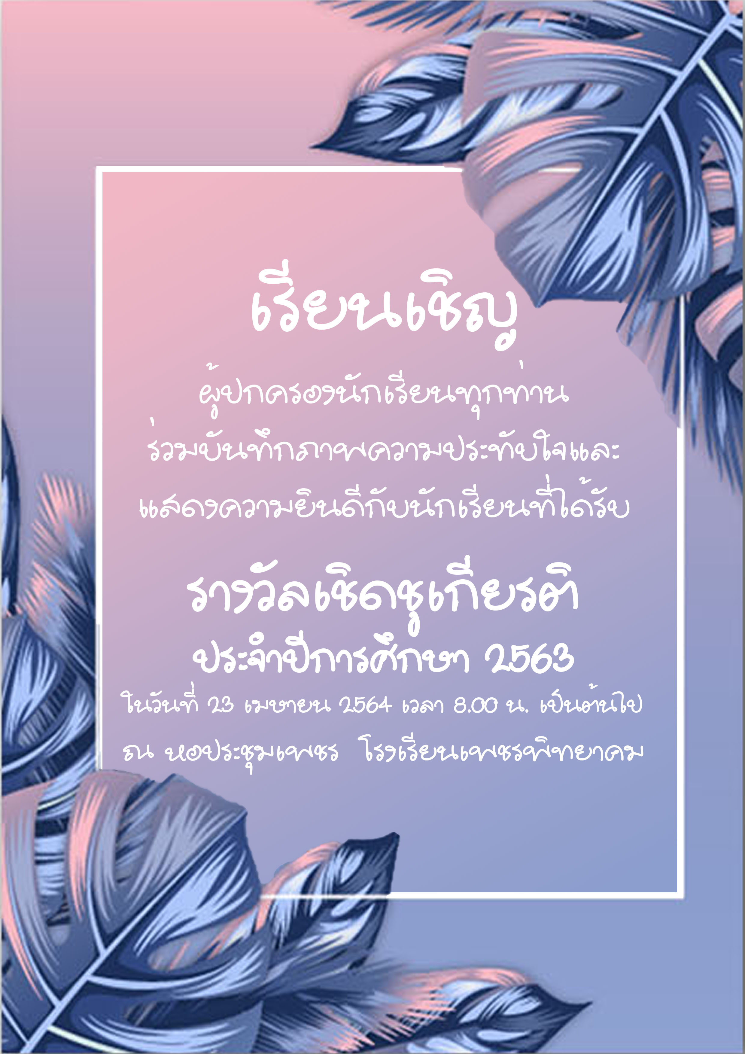 กำหนดการจัดงานวันเกียรติยศโรงเรียน ประจำปีการศึกษา 2563
