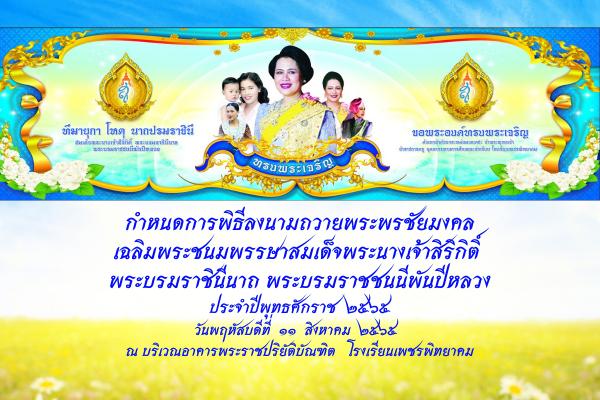 กำหนดการพิธีลงนามถวายพระพรชัยมงคลเฉลิมพระชนมพรรษาสมเด็จพระนางเจ้าสิริกิติ์ พระบรมราชินีนาถ พระบรมราชชนนีพันปีหลวง ประจำปีพุทธศักราช 2565