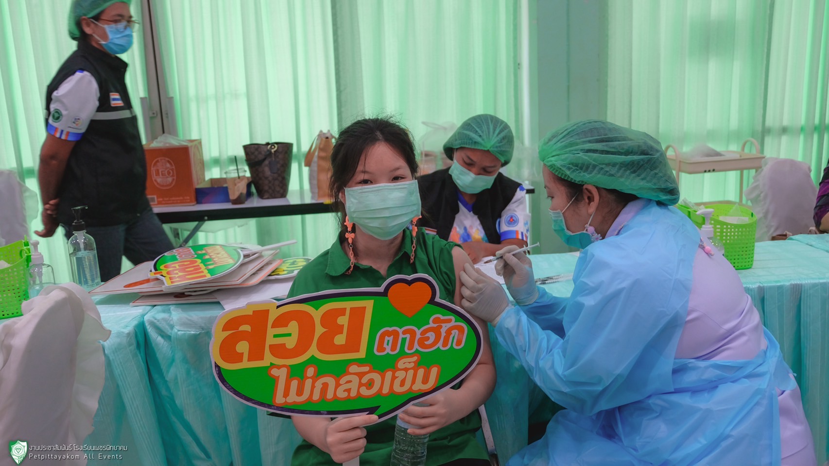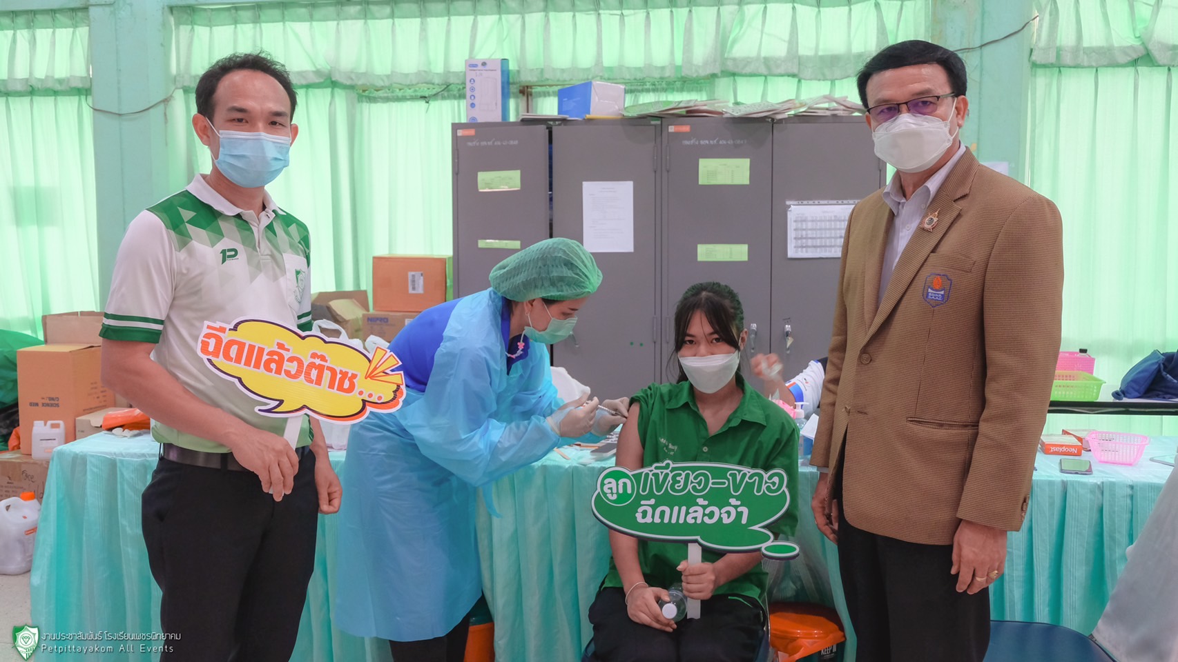 โรงเรียนเพชรพิทยาคมนํานักเรียนเข้ารับการฉีดวัคซีน ป้องกันโรคโควิค - 19 ไฟเซอร์ เข็มที่ 1 Pfizer