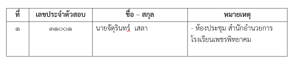 บัดนี้ โรงเรียนเพชรพิทยาคม จึงขอประกาศรายชื่อผู้มีสิทธิ์ เข้ารับการสอบคัดเลือก ดังนี้