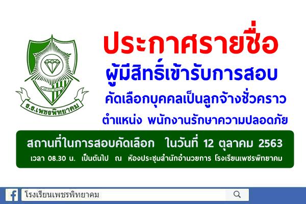 ตามที่โรงเรียนเพชรพิทยาคม ได้ดำเนินการประกาศรับสมัครสอบคัดเลือกบุคคลเพื่อจ้างเป็นลูกจ้างชั่วคราว ตำแหน่ง พนักงานรักษาความปลอดภัย ระหว่างวันที่ 6 – 10 ตุลาคม 2563 ตามประกาศโรงเรียนเพชรพิทยาคม ลงวันที่ 1 ตุลาคม พ.ศ. 2563 นั้น