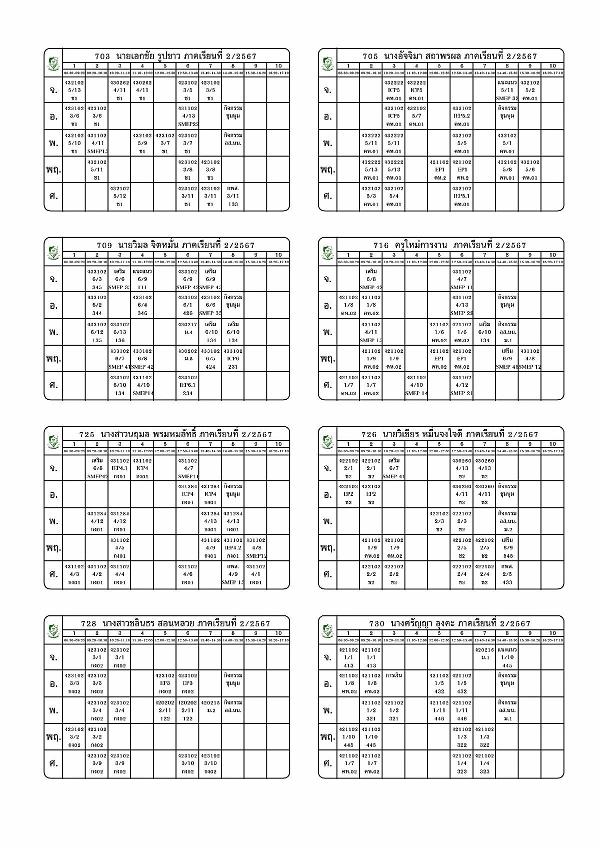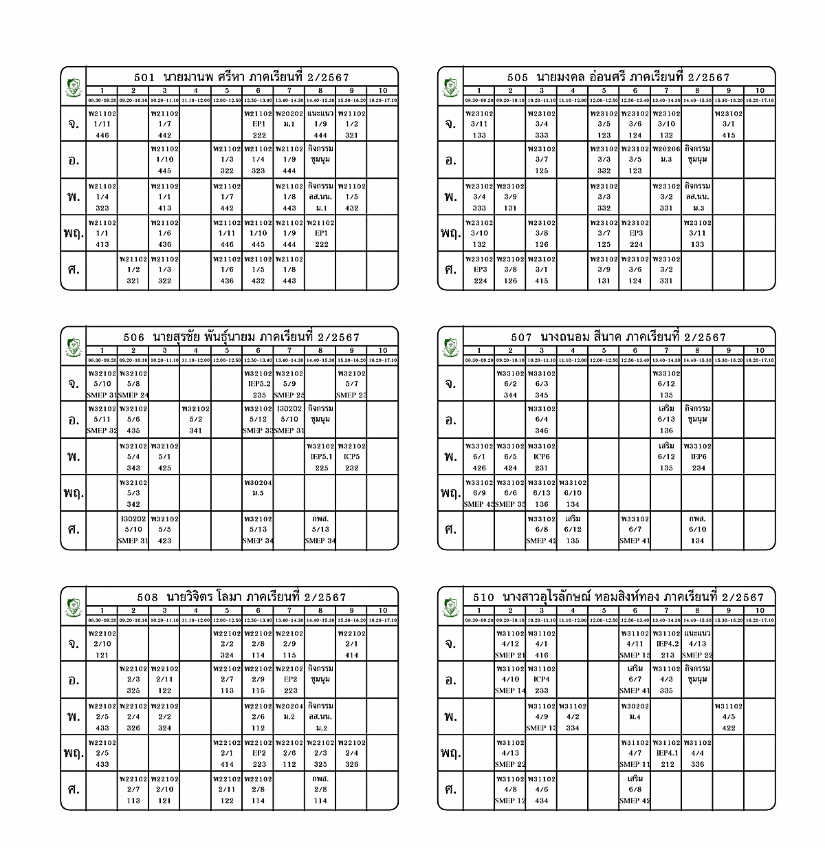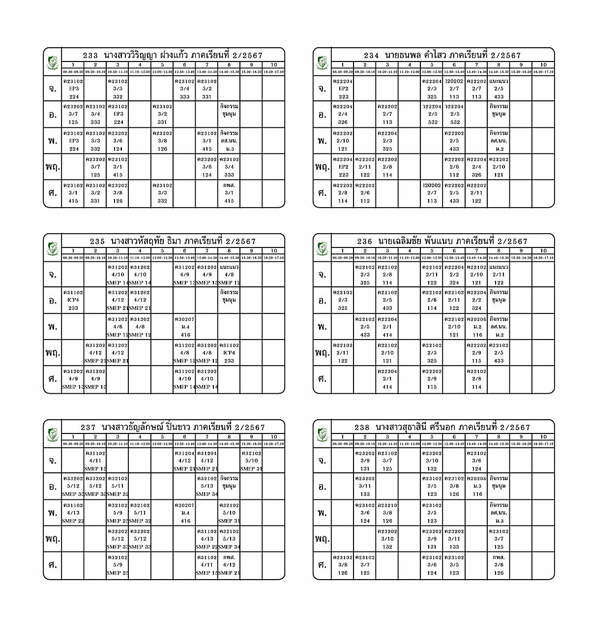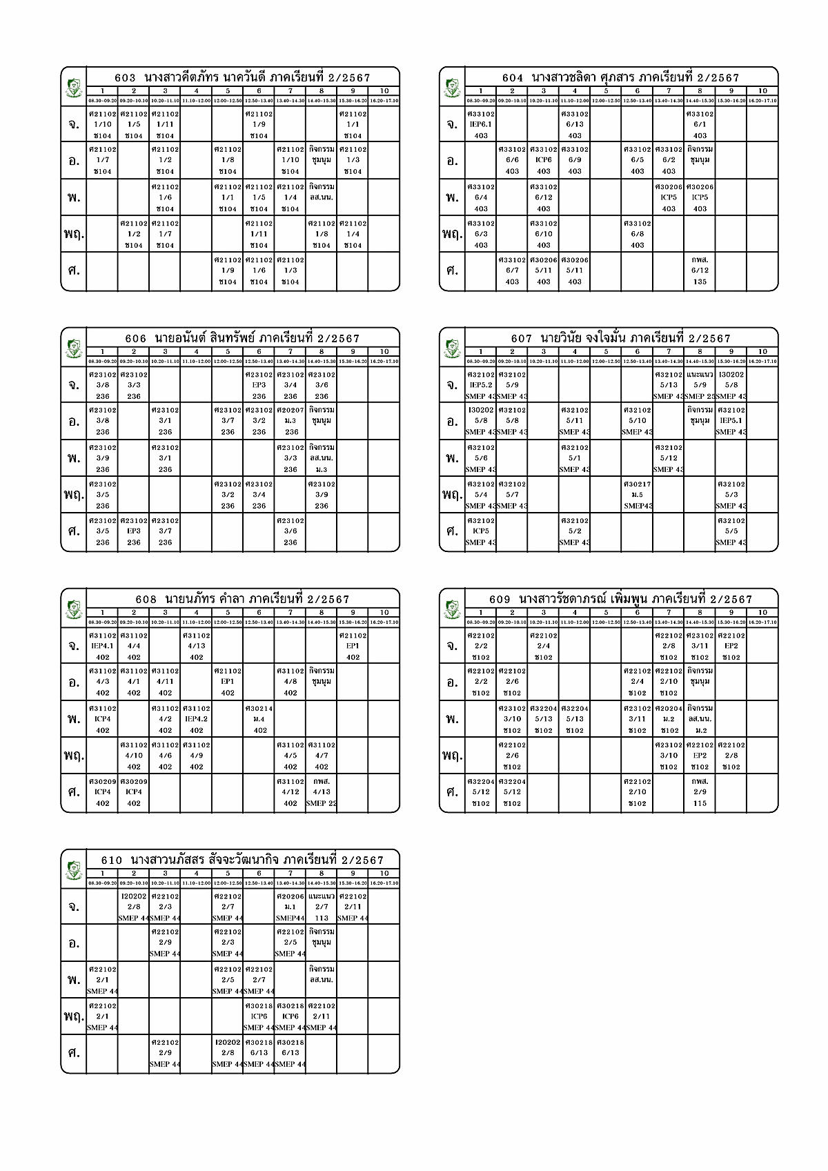 ตารางเรียนสอนครู (ปรับใหม่) เริ่มใช้ 11 พ.ย.2567 เป็นต้นไป